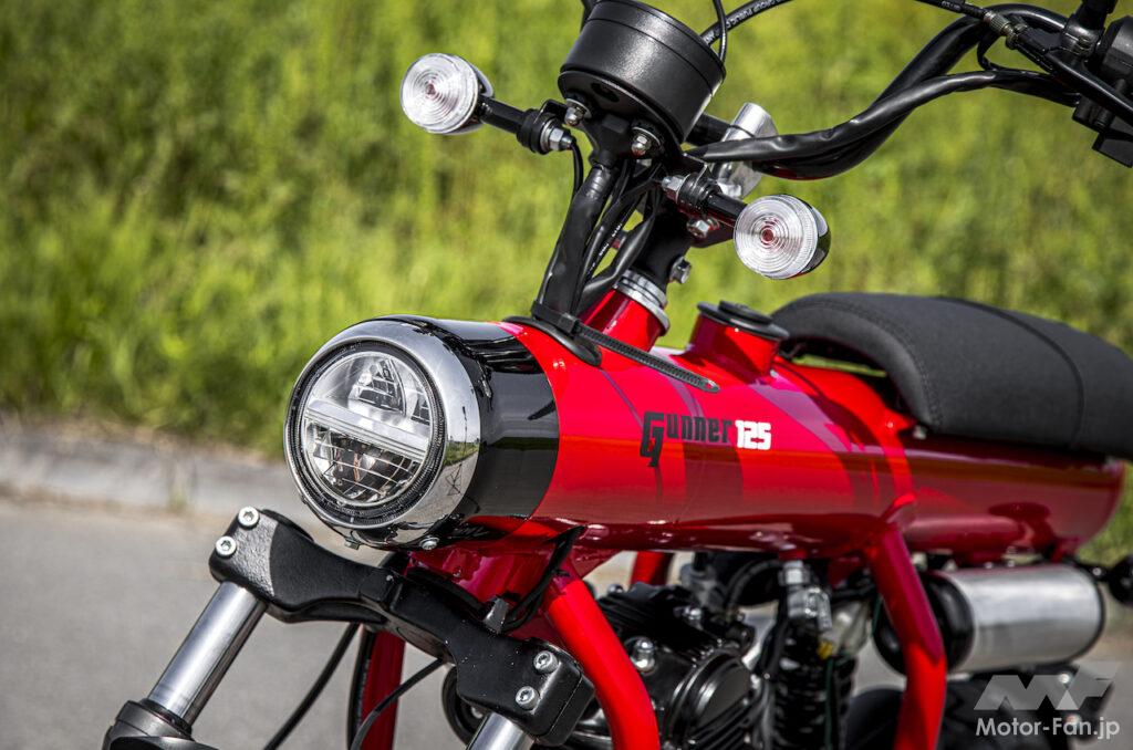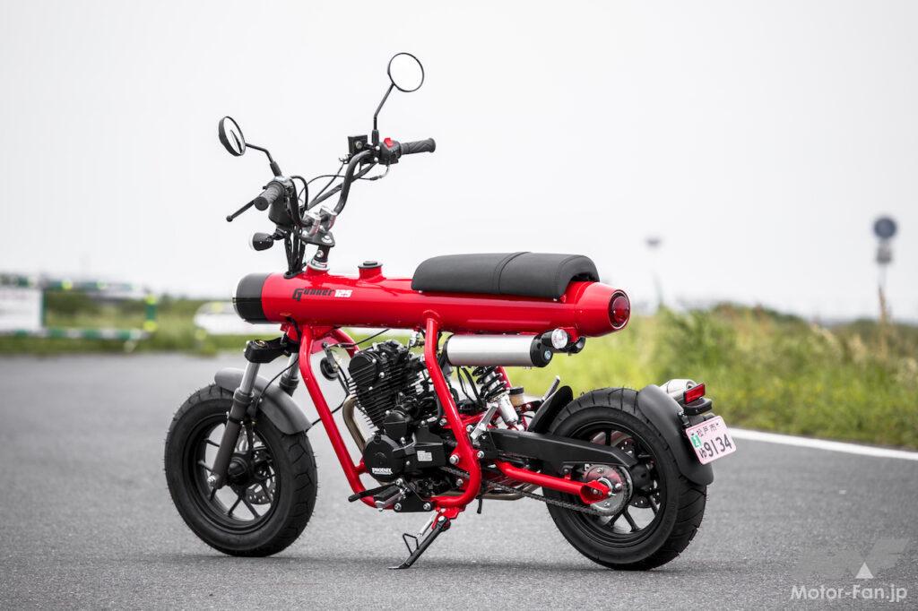 レジャーバイク。そんなカテゴリーがかつてあった。その定義はかなり曖昧だけど、公道を走るモデルとしては1967年生まれのモンキーZ50Mあたりまでさかのぼるのだろう。そしてこちら「ガンナー」は2020年デビューの50/100ccモデルが“初代”。ひと目見ただけで「うわっ、可愛くてなんだか楽しそう!」となるのがレジャーバイクと勝手に定義すれば、このガンナーはその資格十分だ。