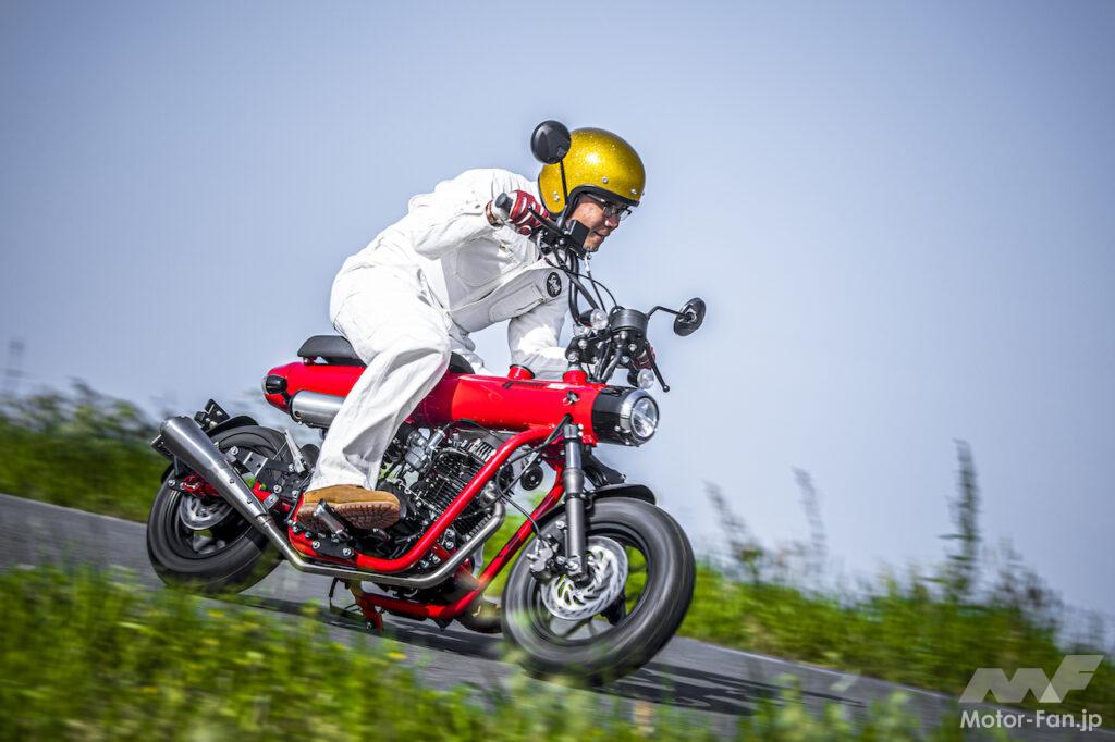 50/100ccモデルからのメジャーな変更点はエンジン形式だ。横型から縦型へと積み直された空冷単気筒エンジンはルックスの印象を少しだけ変え、ファニーなレジャーバイクにちょっとだけシリアスさが足された感じである。とはいえ、そもそもの“砲身”なフレーム形状が形状だけに、ちょっと笑っちゃう3の線イメージは相変わらずキープされている。どのモデルもキャブレター仕様というところに、カスタムへの将来性を感じるライダーもきっといるはずだ。