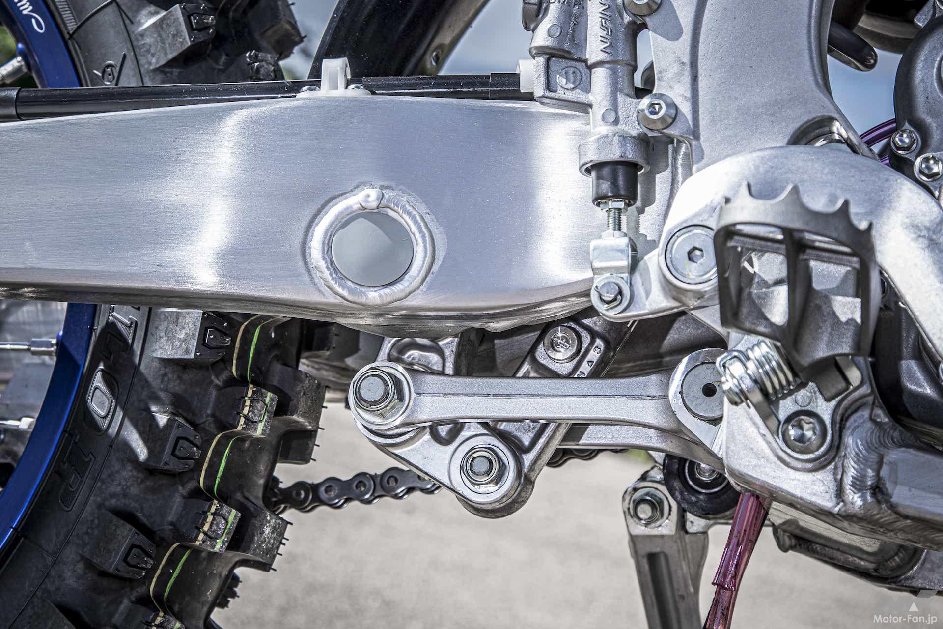 プロジェクトリーダー白井さんによると、「日本専用セッティングを施し、YZシリーズの中でもっとも柔らかいスプリングを使っています」とのこと。前後サスがよく動くため車体の挙動がわかりやすく、トラクション性にも優れます。