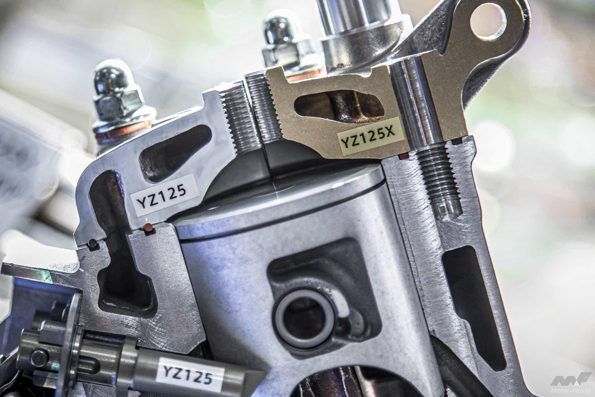 2スト125ccクラスでは到底感じることのできなかった低中回転域での粘り強いトルクは、プロジェクトリーダー白井利幸さん(ヤマハ発動機PF車両ユニット PF車両統括部)によると、「燃焼室形状を変更し、圧縮比を見直したことで実現した」とのこと。