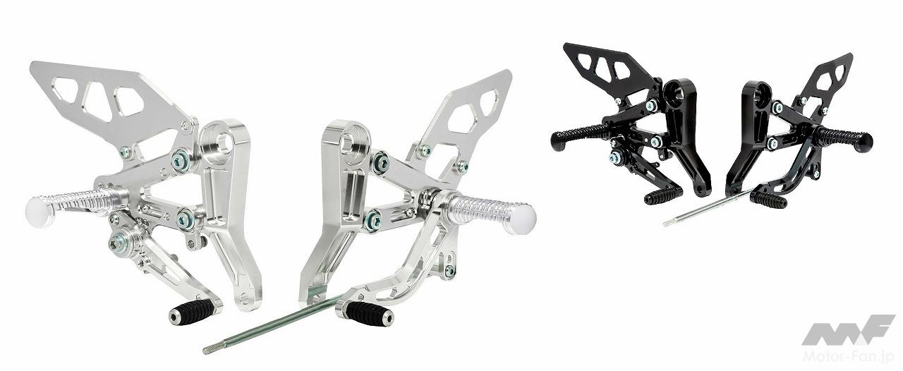 CB125R用のステップはジュラルミン総削り出しで操作性を向上。シルバーとブラックの2色をラインナップする。「乗る」から「「操る」への変化をコンセプトに開発され、純正ステップ以上にリニアな操作性となり、攻めの“姿勢”と“意志”が保てるぞ。
