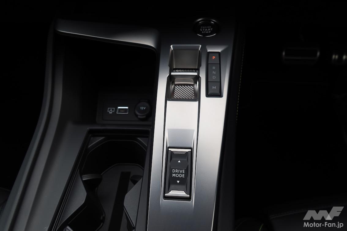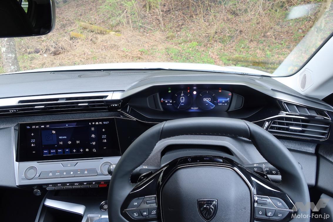 上辺をカットしたステアリングの上からデジタルメーターを覗き込むスタイルなのは、近年のプジョー各モデルに共通しており、新型308もこの独特なスタイルを受け継いでいる。乗り手がその独特なスタイルに慣れたせいもあるだろうが、メーターと空調ルーバーを水平基調のラインで結んだところなど、新しいデザインのおかげでしっくりきている部分もあるように感じる。従来はADAS系のスイッチがステアリングの裏にあるレバーに配置されていたが、新型308では他ブランドと同様にステアリングのスポーク部に配置されるようになった。この変更は使い勝手の面で大きい。