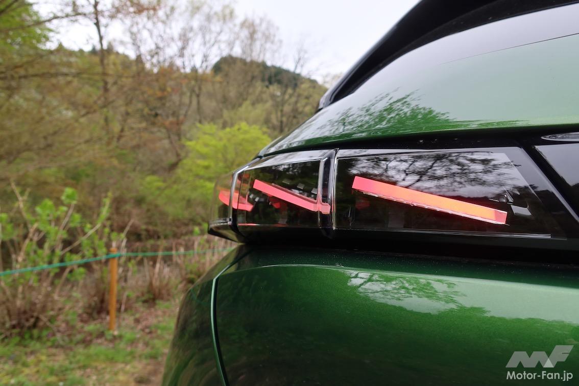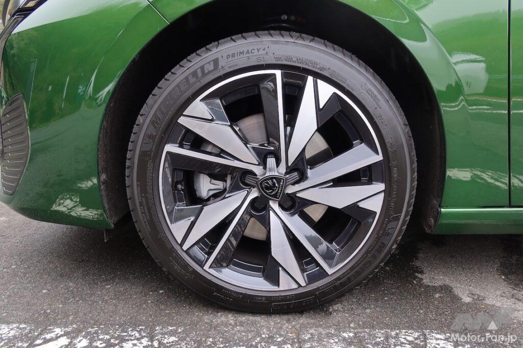 GTはプジョー初となるマトリクスLEDヘッドライト(対向車や先行車を検知すると、その部分だけ減光する機能付き)を装備している。Allureは単なる(それでも)LEDヘッドライトなのだが、ヘッドライトが約7cmと超薄型のため、目つきの違いがわかりづらい。リヤランプはGTが3本のかぎ爪モチーフなのに対し、Allureは横基調。タイヤ&ホイールはGTが18インチなのに対しAllureは17インチだが、これもぱっと見で識別するのは至難の業だろう。