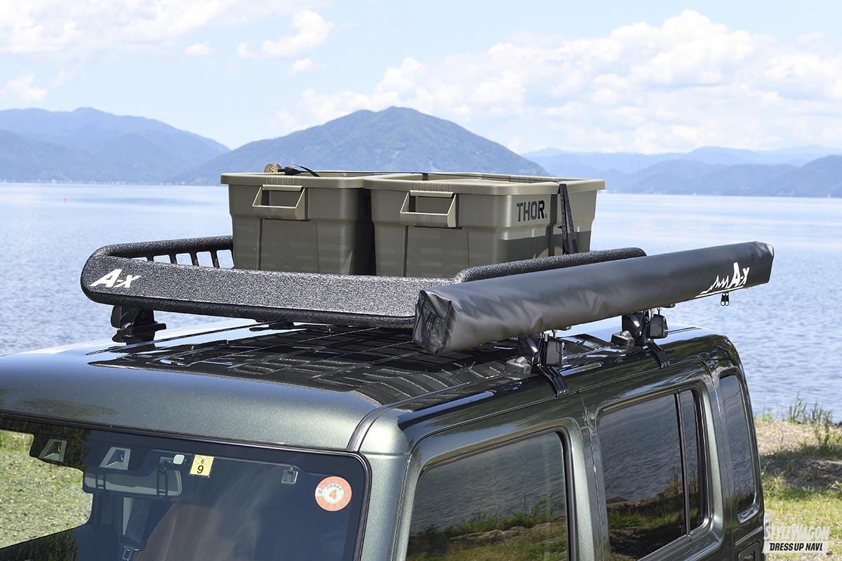 新車コンプリートカーで購入したので、フェイスキットやタイヤ&ホイール、足まわりなどはすでに交換された状態で納車。そこから少しずつパーツをプラスして、ハスラーを進化させている。エクステリアで後から装着したパーツの中でかなり高い満足度が得られたのは、ショウワガレージのルーフラックとサイドオーニング。