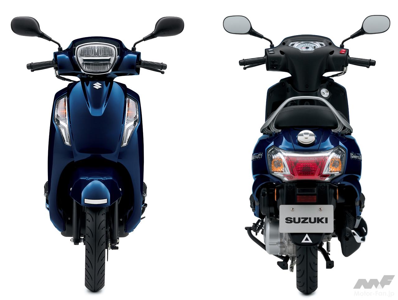 2017年、フロントタイヤを12インチに大径化した、ゆったりと快適に乗れる「アドレス125」を発売。今回発売となる新型のアドレス125 は、従来モデルのコンセプトである「毎日の生活を支えるスクーター」として、“通勤快速”と“通勤快適”を継承。これに加え、長く付き合える新しいスタンダードスクーターを目指し、さらにゆったりとした乗り心地や、2人乗りでの快適性向上も追求している。
