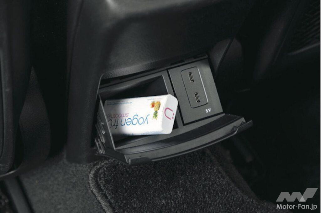 センターコンソールボックスは観音開き(ボタンを押すと開く)のリッドを組み合わせる。内部には2つのUSBアウトレットが用意され、いずれも形状はType-Cだ。