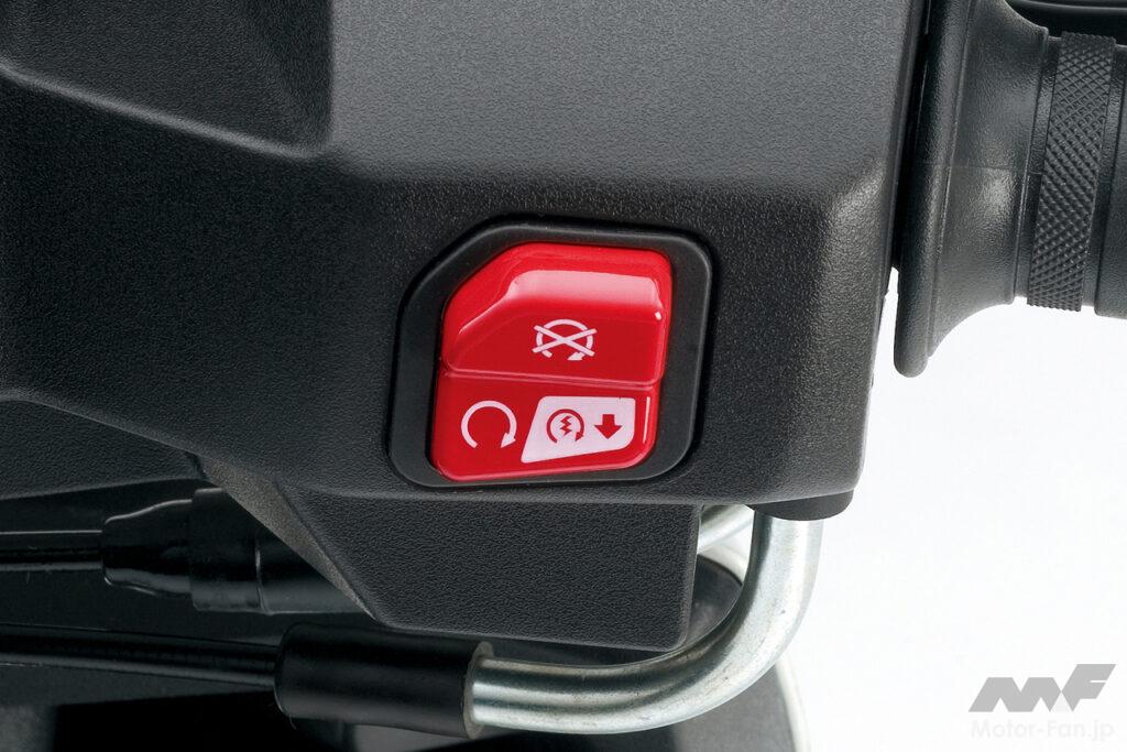 左ブレーキレバーには、停車時に左ブレーキを掛けた状態を維持できる「リヤブレーキロックシステム」を導入。
