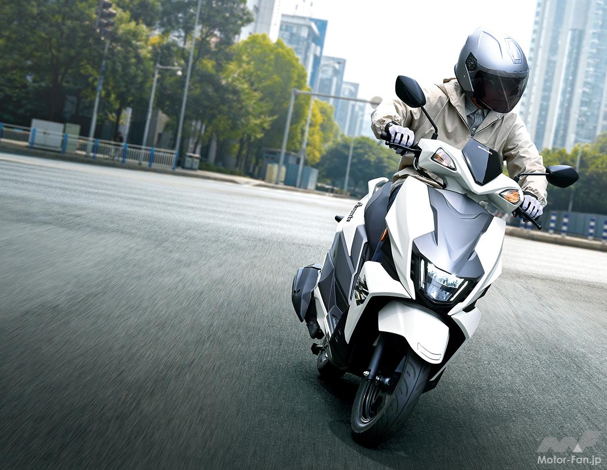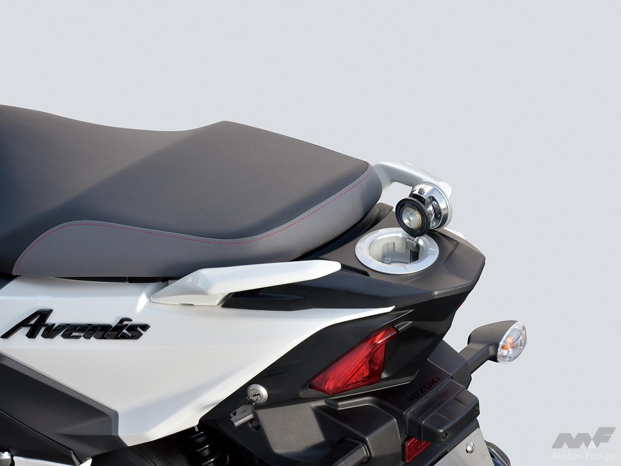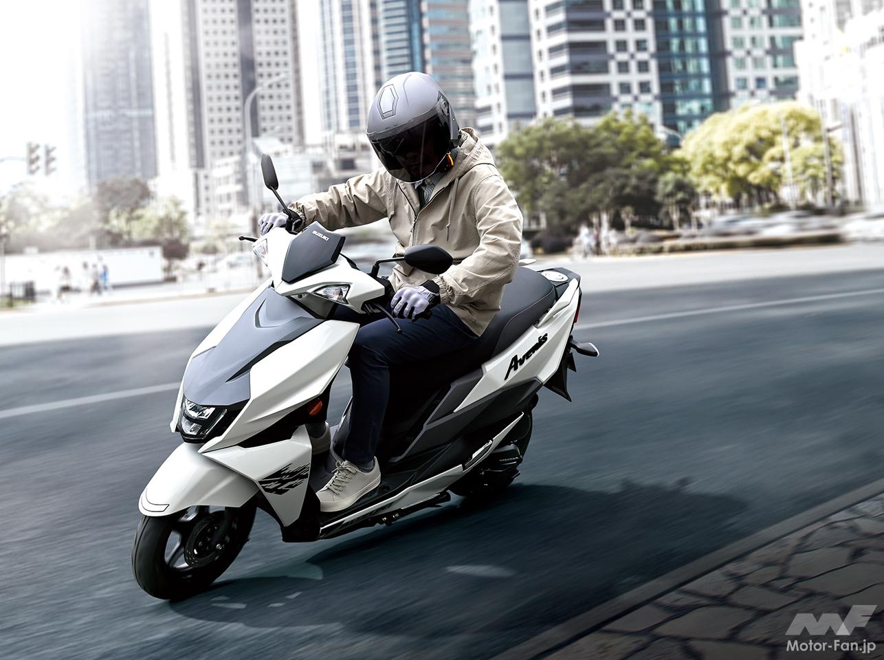 スズキがリリースする二輪のアヴェニスという名称は、都市の「AVENUE(アヴェニュー)=南北の通り」と、「STREET(ストリート)=東西の通り」を自在に移動できるパーソナルコミューターとして命名。