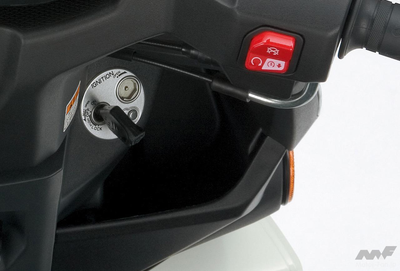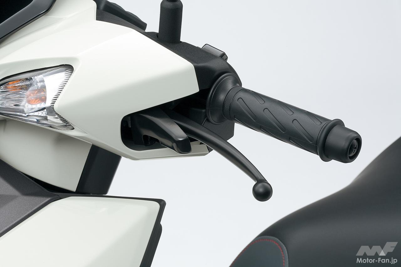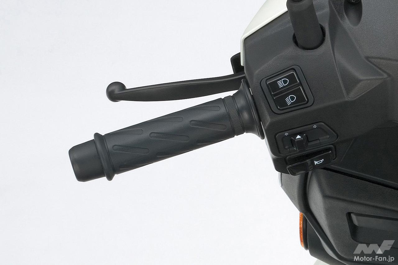 左ブレーキレバーには、停車時に左ブレーキを掛けた状態を維持できる「リヤブレーキロックシステム」を導入。