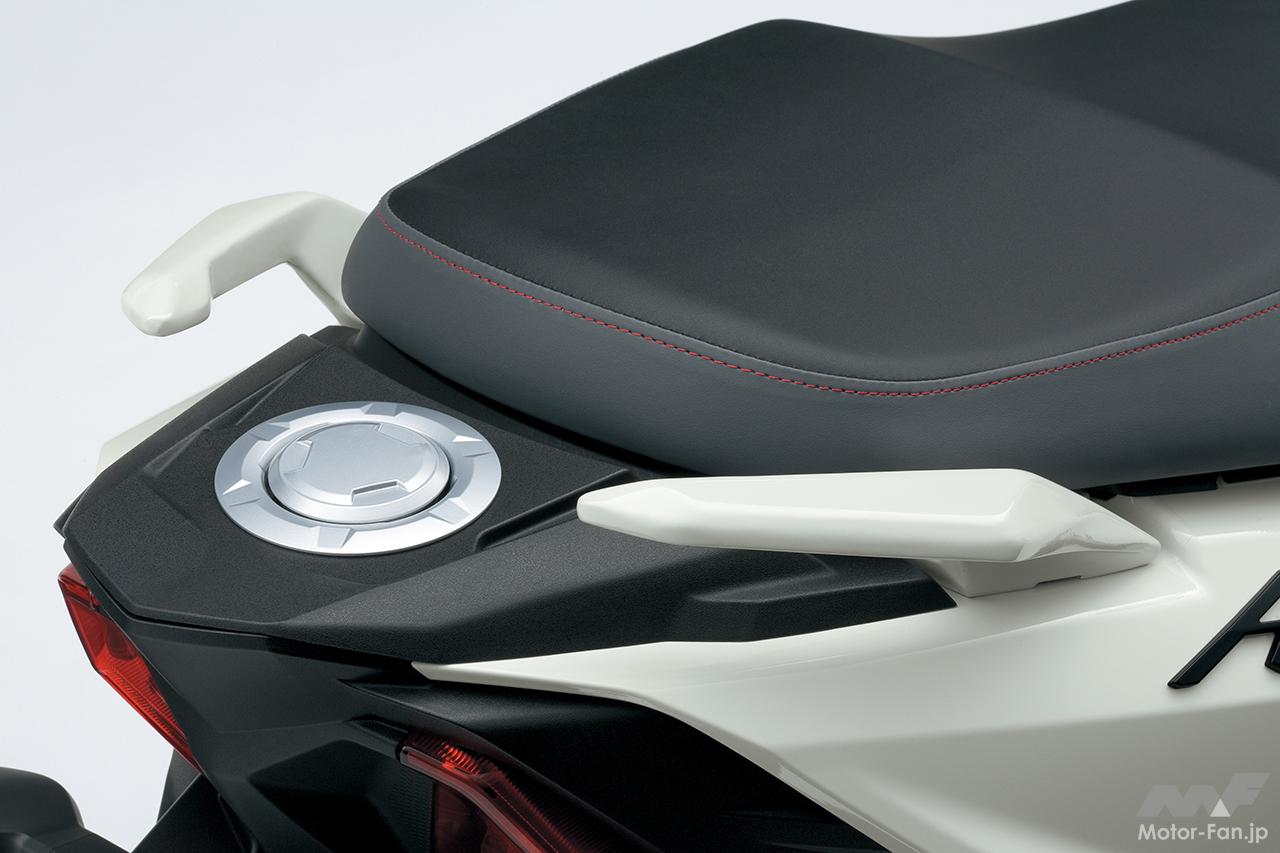 燃料タンクは5.2リットルの容量を確保。給油口はシート後方に設置し、シートを開けることなく給油できる。給油キャップには、「エアプレーンタイプ」を採用。