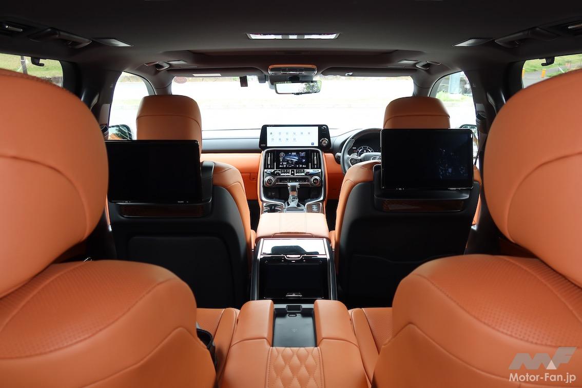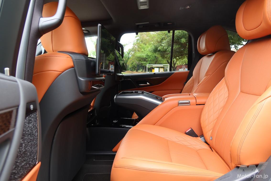後席の住人からすれば、ホテルの客室から窓外の風景を眺める感覚そのものだろう。試乗車のEXCLUSIVEはLXとして初めて採用した4座独立仕様だ。つまり、後席も前席と同様に独立したシートとなっている。前席左右と同様にヒーターとベンチレーションが装備されているし、後席だけにリラクゼーション(マッサージ)機能がついている。中央のコンソールにはスマホのワイヤレス充電機能が備わっているし、前席シートの背面に大きなディスプレイが備わっていて、エンターテインメントも楽しめる。EXCLUSIVE専用の読書灯もある。ドリンクや食事のサービスこそつかないものの、陸上を移動するビジネスクラスといったところか。ラグジュアリーな空間であることは間違いない。