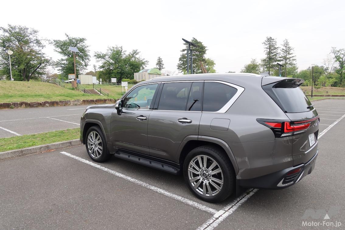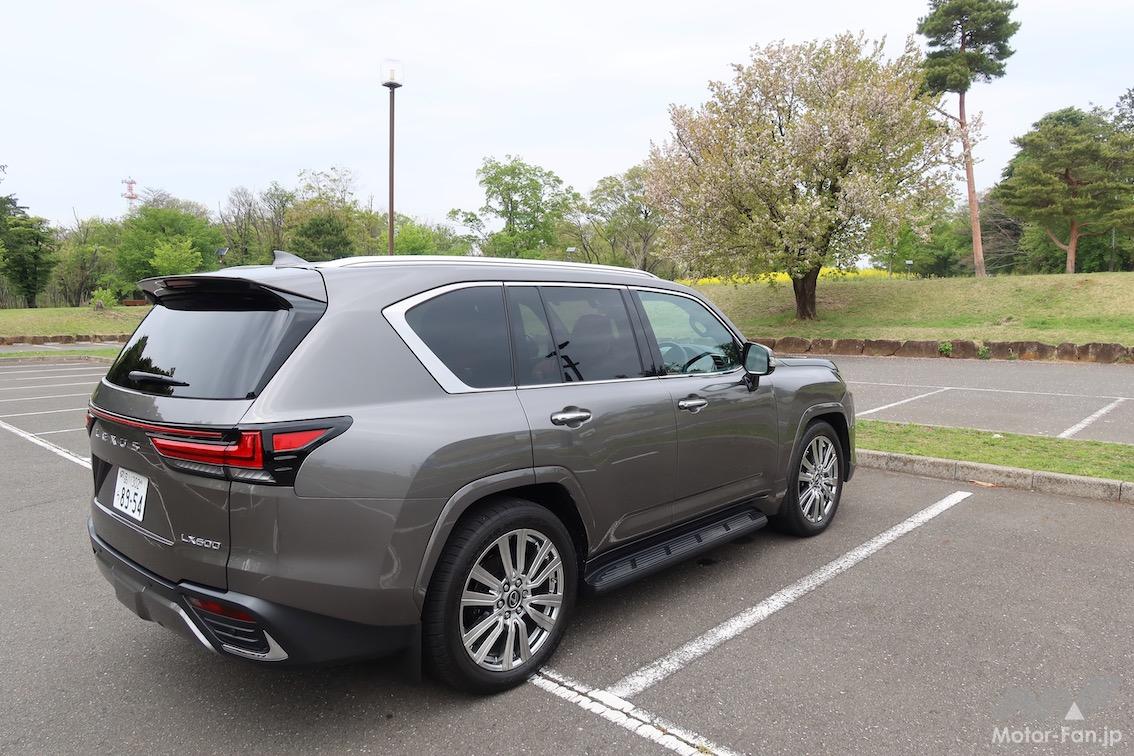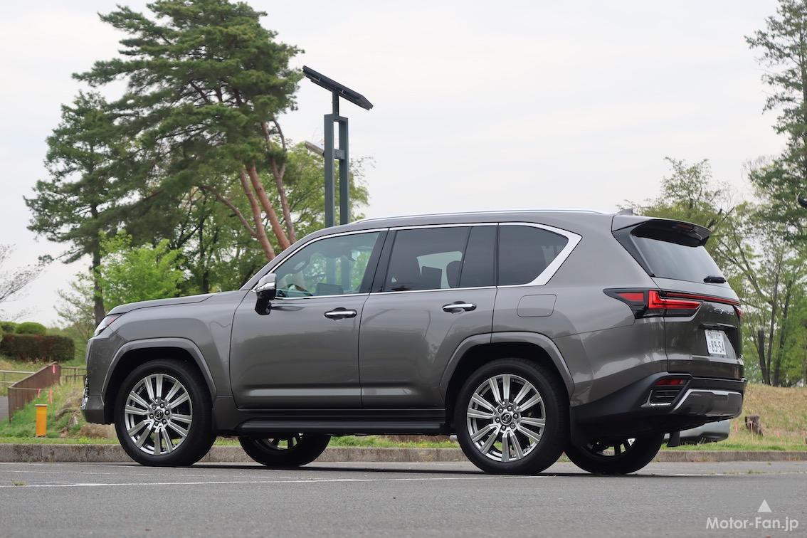 ボディオンフレームの車体構造(すなわち、モノコック構造ではない)や、フロントがハイマウントダブルウィッシュボーン式、リヤはリジッド式のサスペンション形式はランクルと共通だ。モノコックボディだったらステアリングの切り込みに対するクルマの反応はもっと俊敏かもしれないし、路面からの入力に対する力の伝播とそれにともなう車体の動きももっと反応がいいのかなと思わないでもないが、豪華客船を操縦するように、ゆとりを持って運転に臨めばいいだけだ。人間の感覚とクルマの動きのリズムが合わず、車線内にクルマを留めておくだけでも大変と感じるようなルーズさは感じず、ただ、クルマの大きさと重さ相応にゆったりしているだけだ。