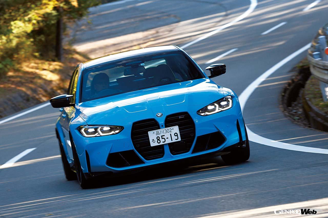 M3のサスペンションは無論締め上げられてはいるが、日常使用でも不満はないと私は思う。不整に対する当たりの角は丸められており、粗野なハーシュネスなどは一切なし。ただし、さすがに巨大なタイヤを抑えつけている重量感はあり、低中速ではノーマルモードでも路面によって明確なガシッという突き上げを感じることもある。対するB4は基本ジェントルで洗練されており、エンジンも逞しいトルクを強調するように回る。ただしカーボンパーツなどを各部に採用して車重1800kgのM3コンペティションに比べて、1930kgのB4はさすがに重量感があり、それはハンドリングにも見て取れる。