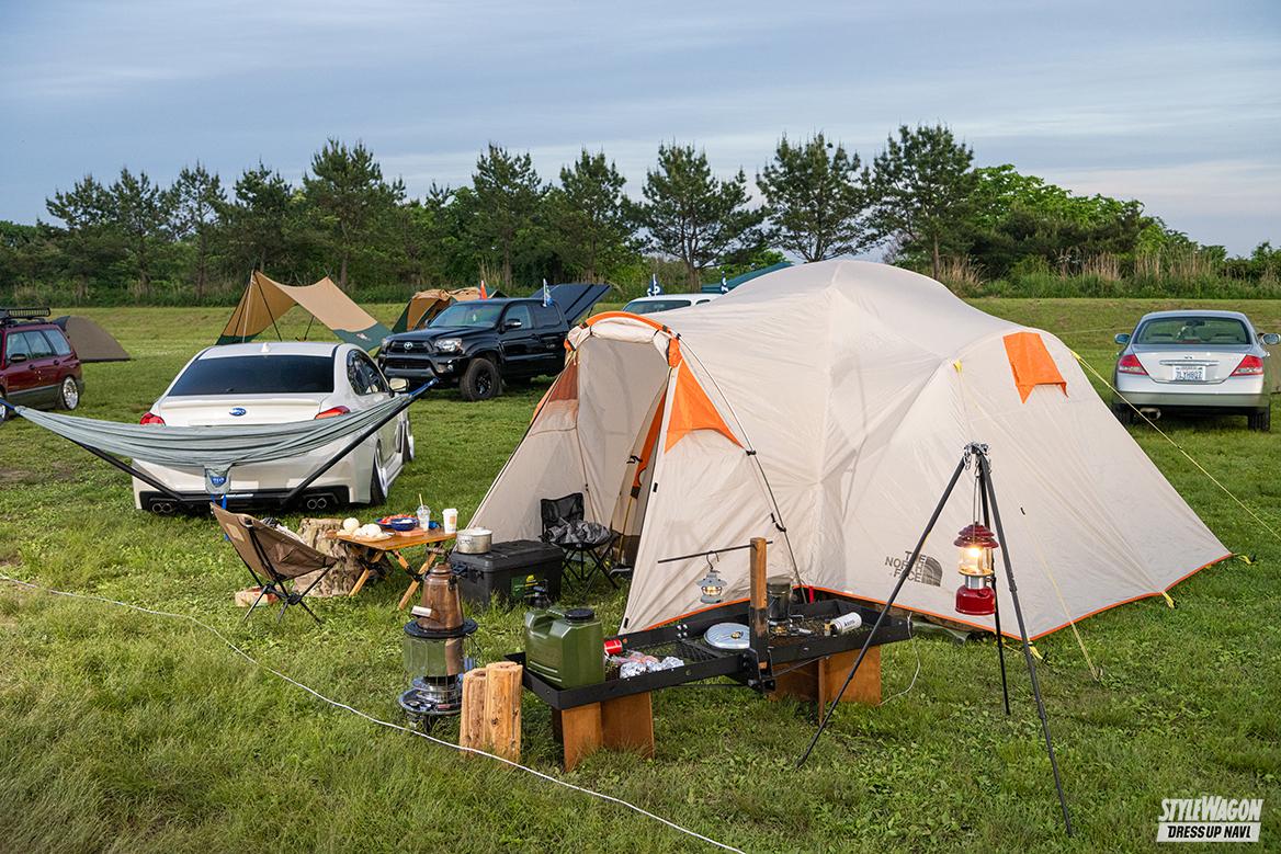 寝袋で寝るのも初めてというキャンプビギナーのNAOさんカップル。とりあえず、何が必要かわからないから見様見真似でいろいろ一式揃えたそうだが、ギアのチョイスは完璧☆前回のイベントは参加できなかったため、今回はキャンプから参加するぞーと気合い十分でエントリー。テントの設営は初めての割には簡単にできたそうで、2人で協力しながらやるキャンプは、とても楽しかったとのこと。BBQはもともと好きだそうで、食材もたっぷり用意でお腹まんぷきん♪