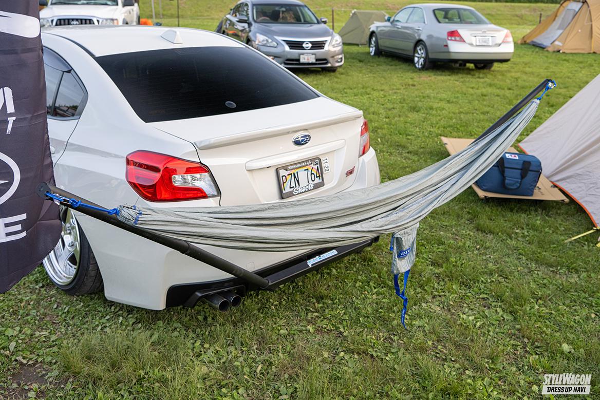 10年くらいブランクがあったが、お子さんが生まれて、キャンプを再開したというならたくさん。お家で薪ストーブを使用していることもあり、スウェーデントーチなど、焚き火類の装備はバッチリだ!しかも、スウェーデントーチはご自身で切れ込みを入れているという超本格派。今後はルーフテントを考えているが、強度や耐荷重の問題など、少し不安があるが、もしかしたらルーフレールを付ければ装着できる可能性があるかもと検討中。積載性がネックのセダンでのキャンプスタイルの救世主になるか?
