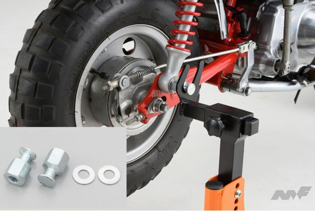 「一人でリアスタンドをかけるのが不安・・・・・・」という人のためにこちらのアタッチメントを使うことで簡単にリフトアップができるように。