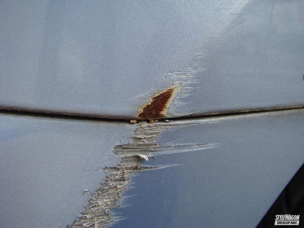 車体の経年劣化や走行によるキズなどを発端に表面の塗装が剥がれ、下地の金属が露出することでサビが発生しやすい状況になる。これをそのまま放置すると酸素や水分と結合しサビる。