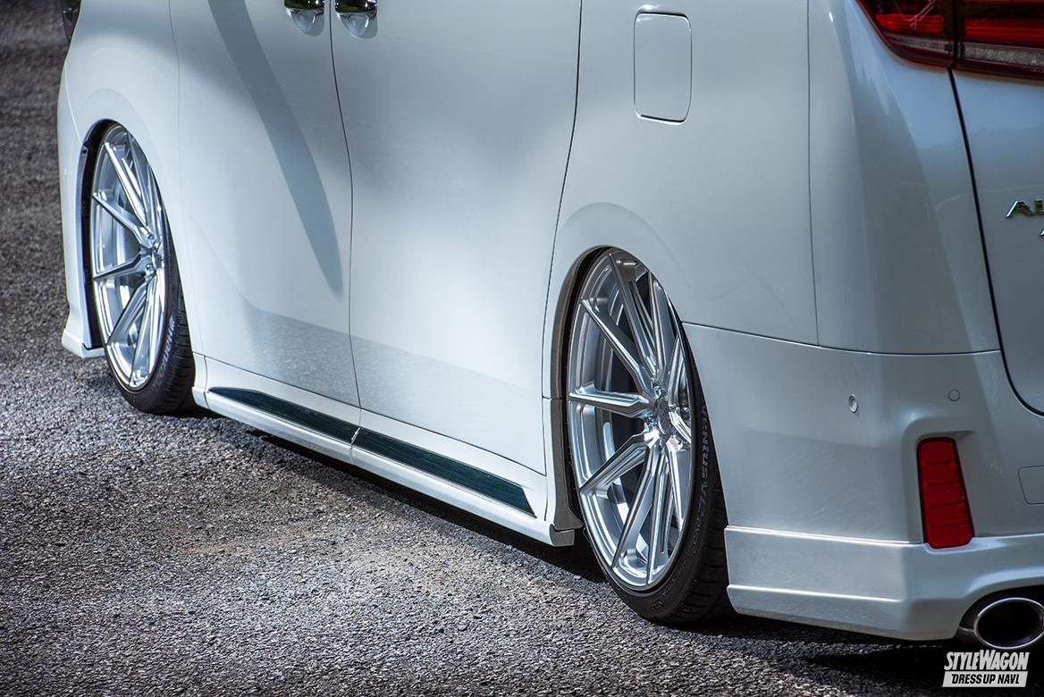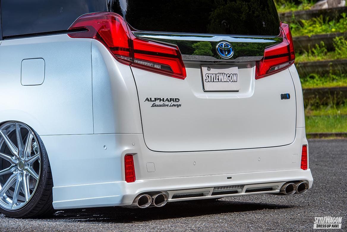 レクサス界でも広くその名を知られるレクソンが放つ後期エアロは、ヴェルファイアがフラップ×ディフューザーのスポーツ系、アルファードがボリューム面にも配慮したラグジュアリー系と、ベース車のキャラクターにあわせスタイルを明確化している。前後だけでなくサイドも個別にデザインと、強いこだわりを感じさせるエアロだ。かといって提唱するスタイルをそのままに鵜呑みにしなくてもOK。サイド、リアはアル&ヴェル両者共通となるため、組み合わせを変えて楽しむなんていう、ハズシも大いにあり!