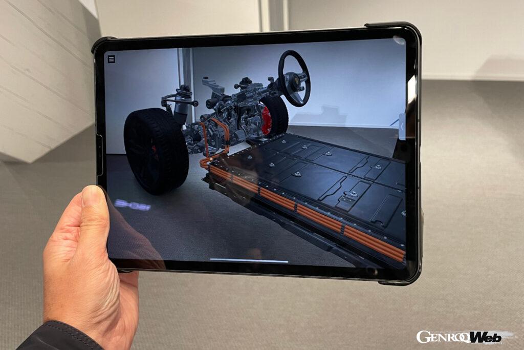 前後にサイズが異なるタイヤ&ホイールを選択できるのも電動化のメリットだという。PPEの場合、22インチまで装着可能で、グリップの向上だけでなく、前後バランスの補正をしやすくなるという。