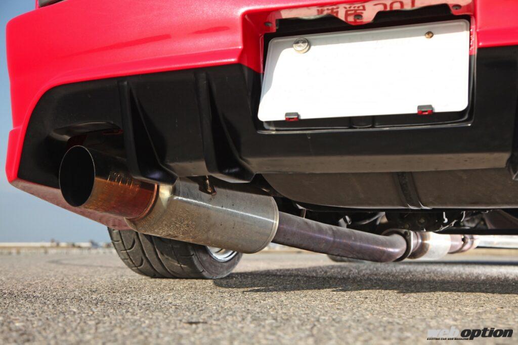 そしてサウンドチューニング。音質の要はEXマニということから、通常よりも肉厚の薄い38φパイピングを使った手曲げの6-2-1ワンオフEXマニを製作。そのまま80φのストレートマフラー(ブリッツベース)へと繋げることで、狙い通りの高周波サウンドを手に入れた。
