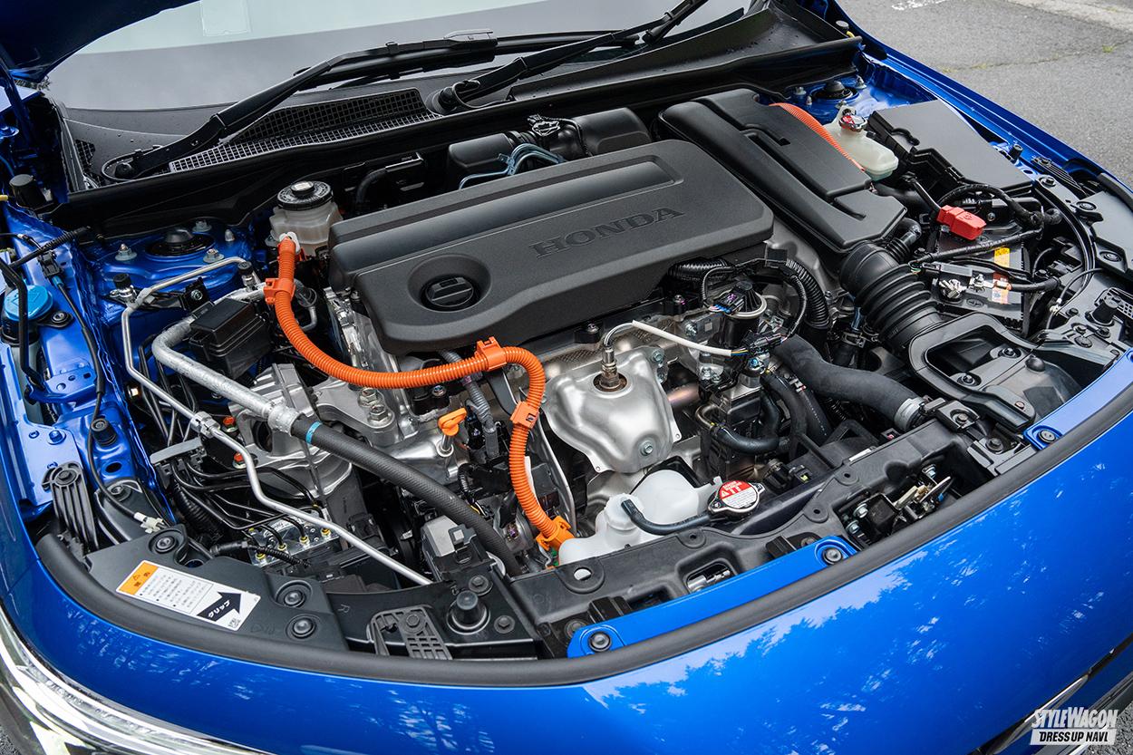 e:HEV(イーエイチイーブイ)とは、走行用と発電用の2つのモーターに高効率のエンジンを組み合わせた、ホンダ独自の次世代2モーターハイブリッドシステムだ。エンジンとモーターを巧みに使い分け、静粛でシームレスな加速フィールを実現している。