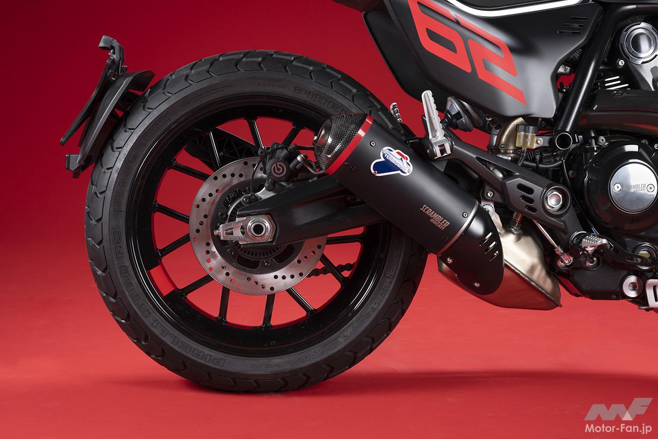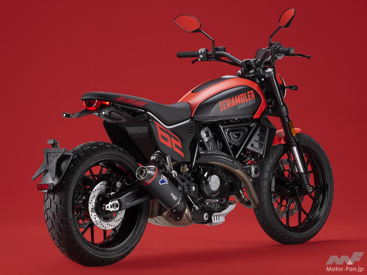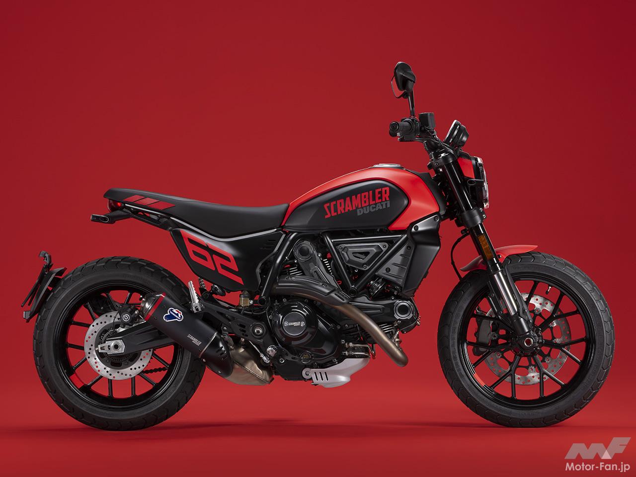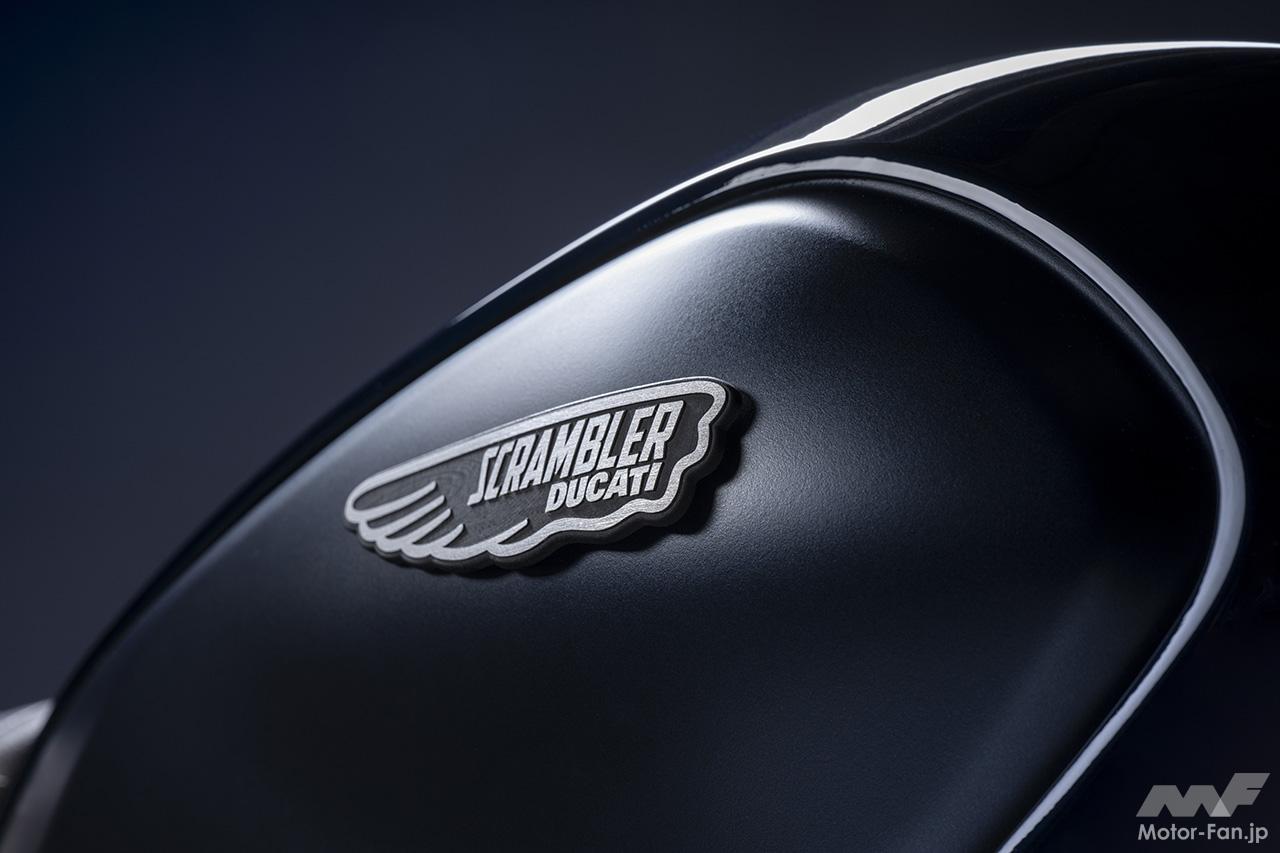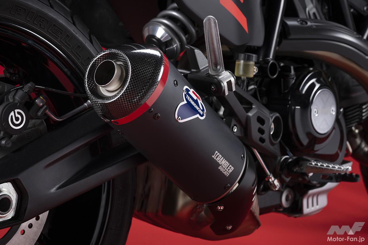 空冷4ストロークL型2気筒803ccのデスモドロミック2バルブエンジンを搭載したモデルは、2019年モデルより登場。今回発表された2023年モデルは、タンクやテールのデザインを一新。また、シャシーのベースとなるトレリスフレームとスイングアームも変更された。