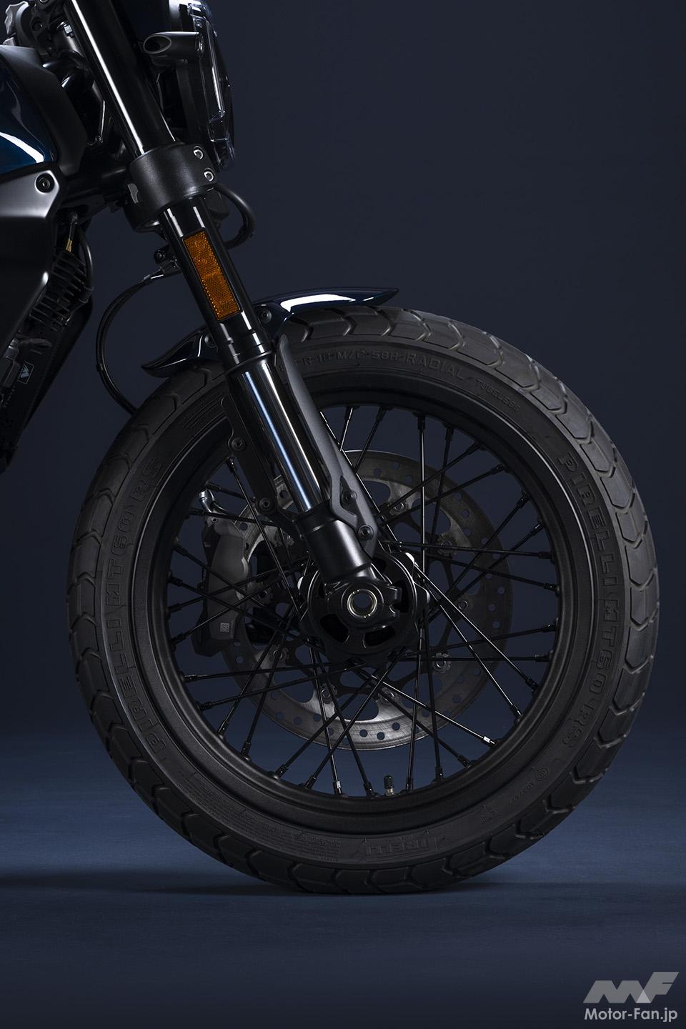 前モデルに比べ、2023年モデルはシリーズ3モデルとも、車体重量を約4kg軽量化して扱いやすさを向上。新設計のホイールは、フロント18インチ、リア17インチの異型サイズに設定。フロントフォークとリアショックは前モデルと同様、倒立型フォーク&モノショック型が採用されている。