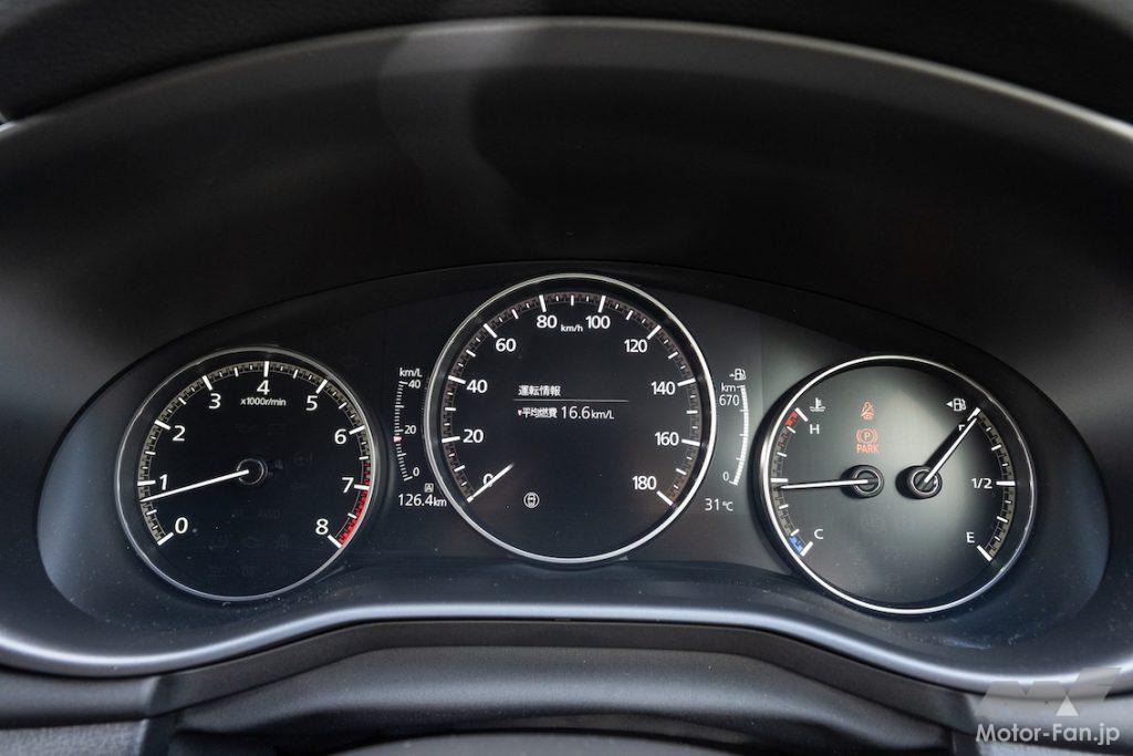 では、6速MTモデルはどうか? マツダのMT車はメーター内に、いま何速に入っているか、変速すべき場合は、「2ー3」とか「4-5」「2-4」というような表示が出る。ATなら、トランスミッション側で最適なギヤ段を選んでくれるから意識しなくていいが、MTだと自分で変速操作が必要だ。緩くて長い上り坂では、6速から5速、あるいは4速へとダウンシフトが必要なシーンが、わりとよくある。地下駐車場から地上に出るためのスロープでも、やはり少しエンジンのパワー不足を感じる。