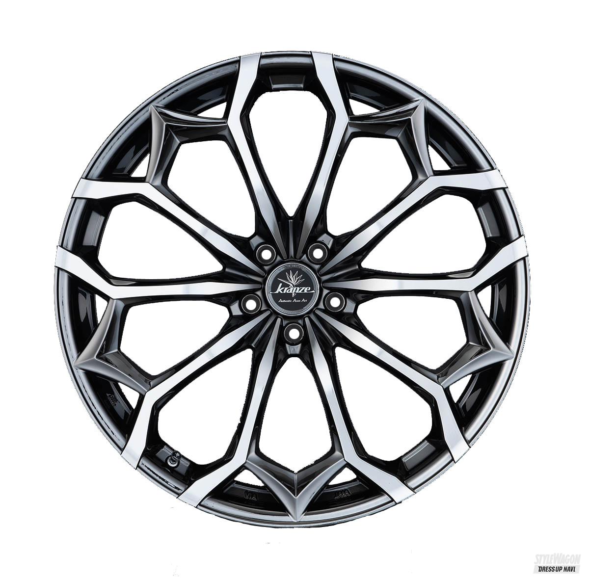 ハリアーは本来のシルエットが美麗で洗練されているから、車高とホイールのみのシンプルな手数でも十分に映える素材。しかもそのホイールが何者にも似ず、独特の世界観を描き出しているものであれば、なおさら。クレンツェが贈るジルドーン384エボはまさに、そんな足元のみのシンプル路線でもバツグンの威力を放つ一本と言える。直線的に発進した立体スポークたちは、その先端でつながりや輪を表現したという柔らかなトライアングル形状でフィニッシュされる。いわばエッジと、ラウンドとの融合。鋭いのにやわらかな独特のそのフェイスデザインは、唯一無二の幾何学的世界を演出する。しかもただアート系なだけではない。あのクレンツェの流れを汲むから高級感、威張り度、優越感は破格。ダイナミックなリムオーバー形状で、破格のデカさ感まで獲得できるのは文句なしにアドバンテージ。ハリアーの車格ならではの22インチ履きでインパクトを稼げるのも、384エボの強みだ。
