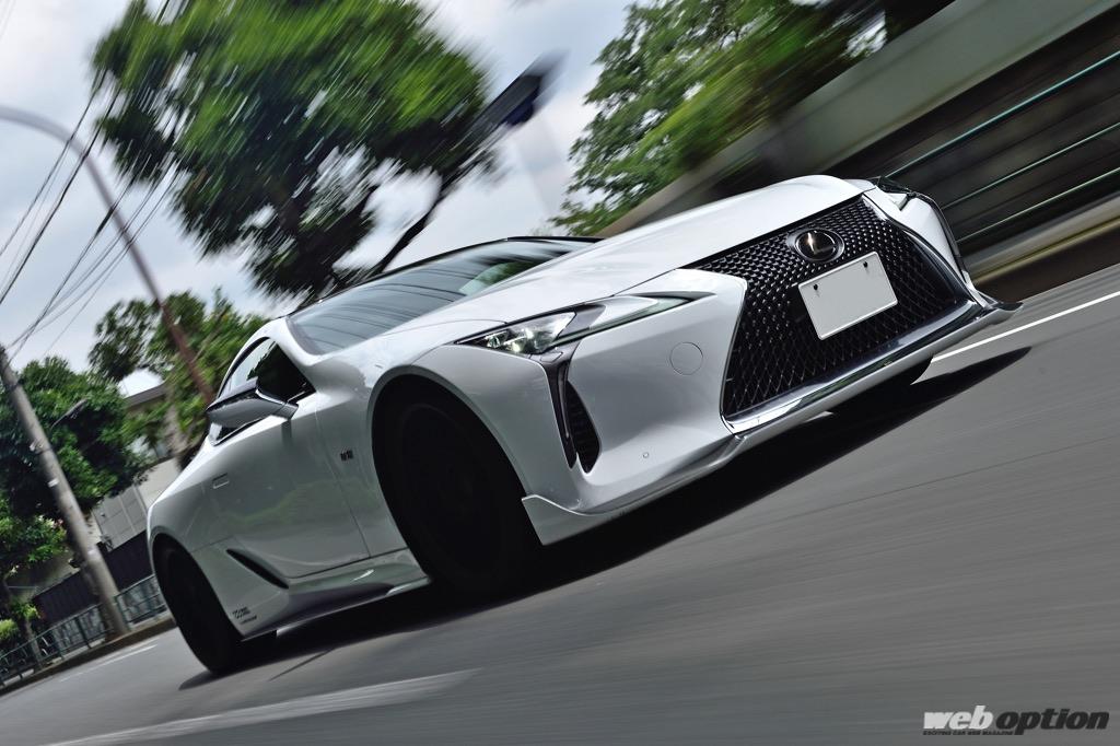 まず目を惹くのが、先鋭的なエアロパーツである。“LC500のホットモデルが存在したとしたら、こういう仕上がりになるのでは?”というほど流麗なフォルムでまとめあげる。もちろん、機能面まで十分に考慮された設計となっており、フロント、サイドについてはカーボン製とすることで高い質感まで手に入れた。