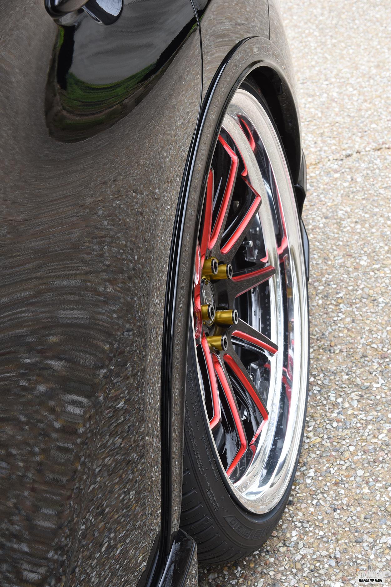 パッと見、量感がバッチリな印象なのだが、実はこのエアロ、高さは純正バンパーとほぼ変わらないサイズで設計されている。つまり装着後も満足いくだけのローダウンに挑戦できたり、ふだん乗りも快適にこなせたりと実用面でのメリットも多いのだ。