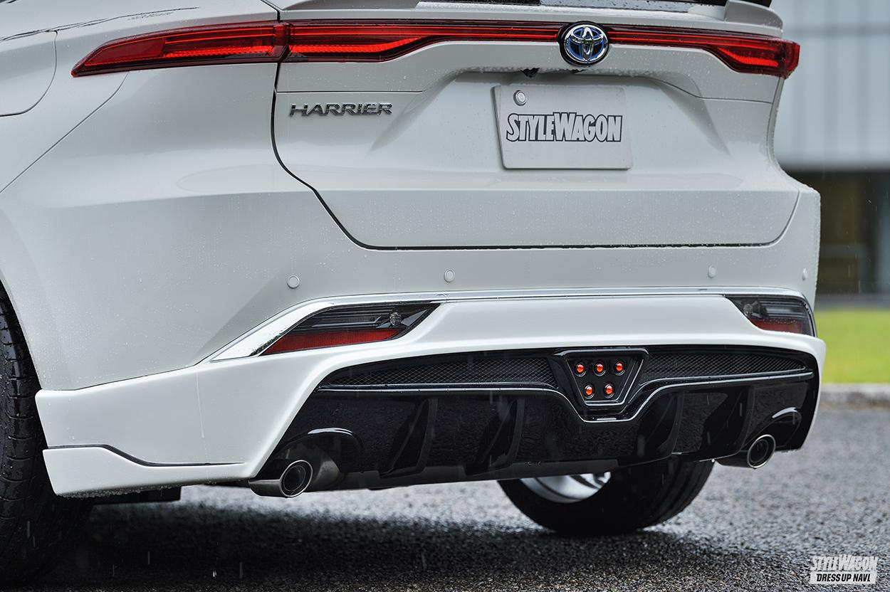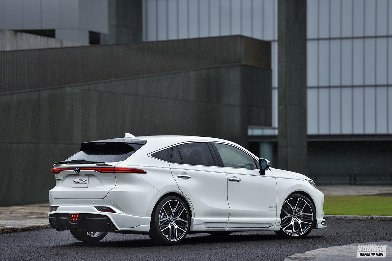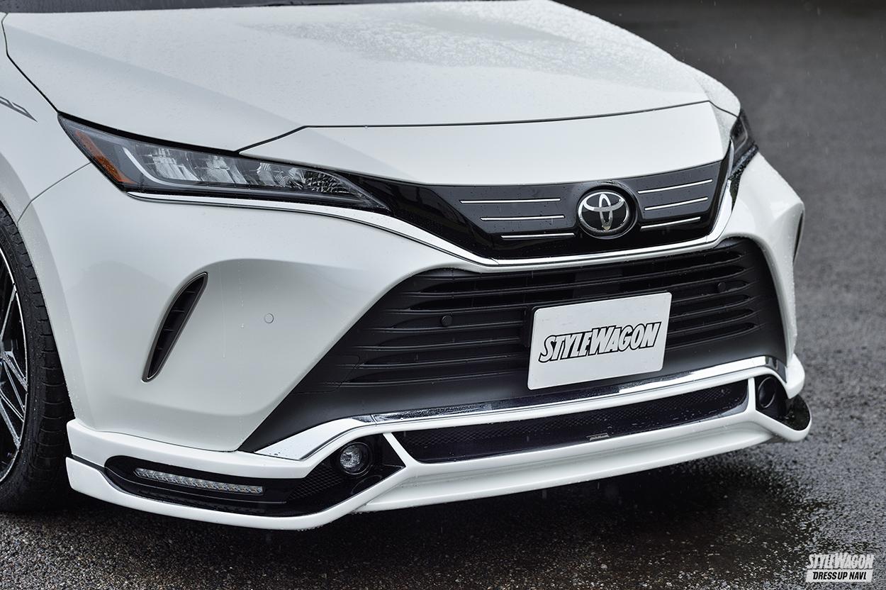 シルクブレイズが80系に求めたのは“スポーツ&ラグジュアリー”。ハリアーに限らず、SUVといえば腰高で、クラッディングパネルと呼ばれる全身を取り囲む黒やグレーの樹脂パネルが定番となっているが、新作エアロではそのらしさをあえて否定。ハリアーが以前から持っている、アーバンでプレミアムな雰囲気の向上を図れるよう、適度なボリュームとワイド感、そしてスポーティさを感じさせるハーフエアロを開発した。