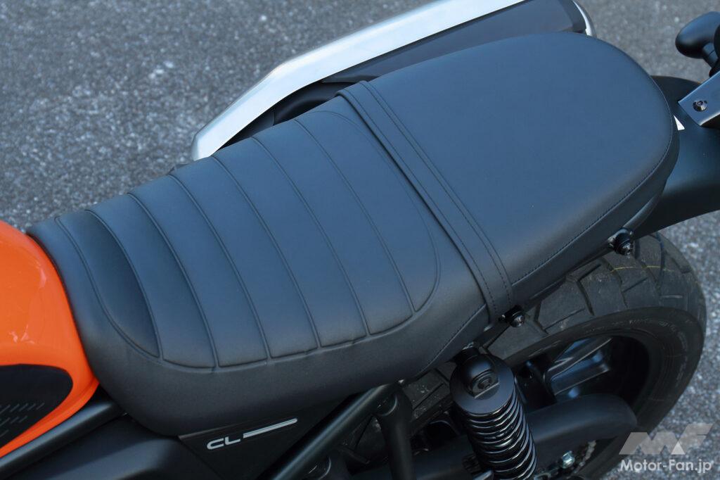 CL500についても、詳細説明はない。しかしEICMA出展車両発表時のプレスリリースで少しだけ記されていたのは、欧州でも人気のCMX500 Rebelのエンジンを搭載。つまりダイヤモンドフレームに搭載されているのは、水冷DOHC4バルブの直(並)列2気筒。ボア・ストロークは67×66.8mmというほぼスクエアの471ccエンジンである。出力とトルクのスペックデータはほぼ共通ながら、吸排気系および燃料噴射制御ECUの専用設定と、2次レシオの変更で、総減速比が低く設定され、スロットル操作に鋭く反応するハイレスポンスを発揮。