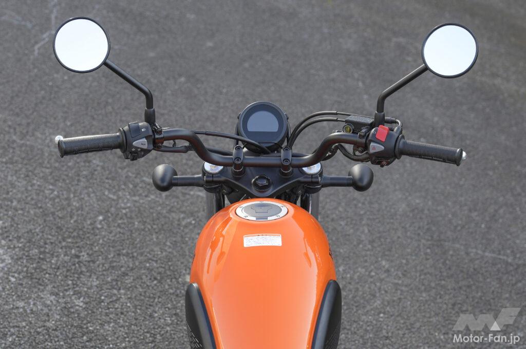 光軸を上下段で分けた4灯式LEDヘッドランプはレブルと同じ部品が流用されている。