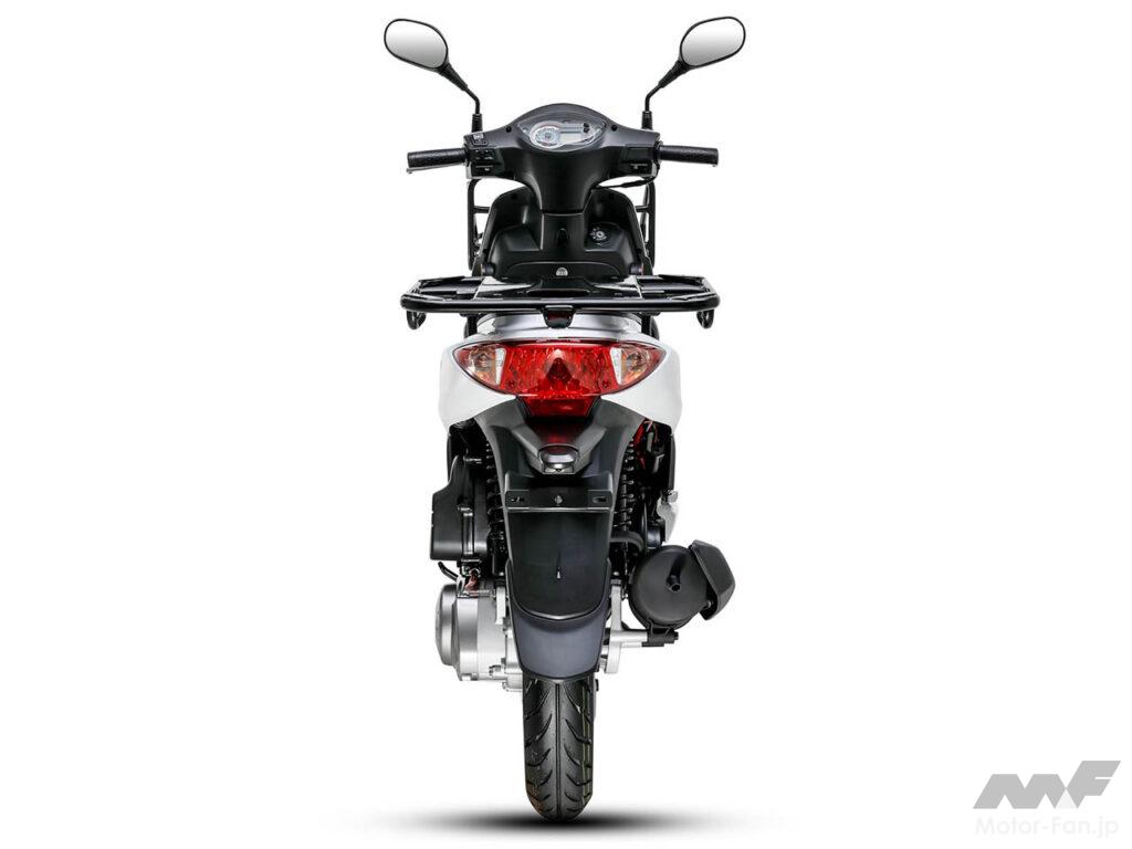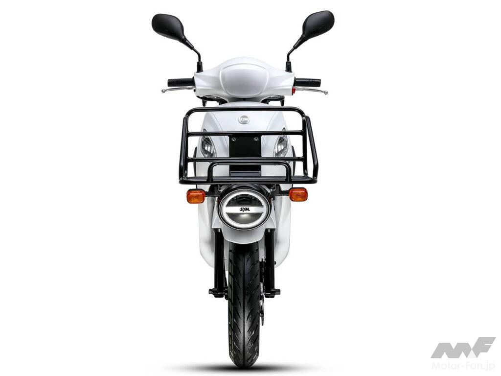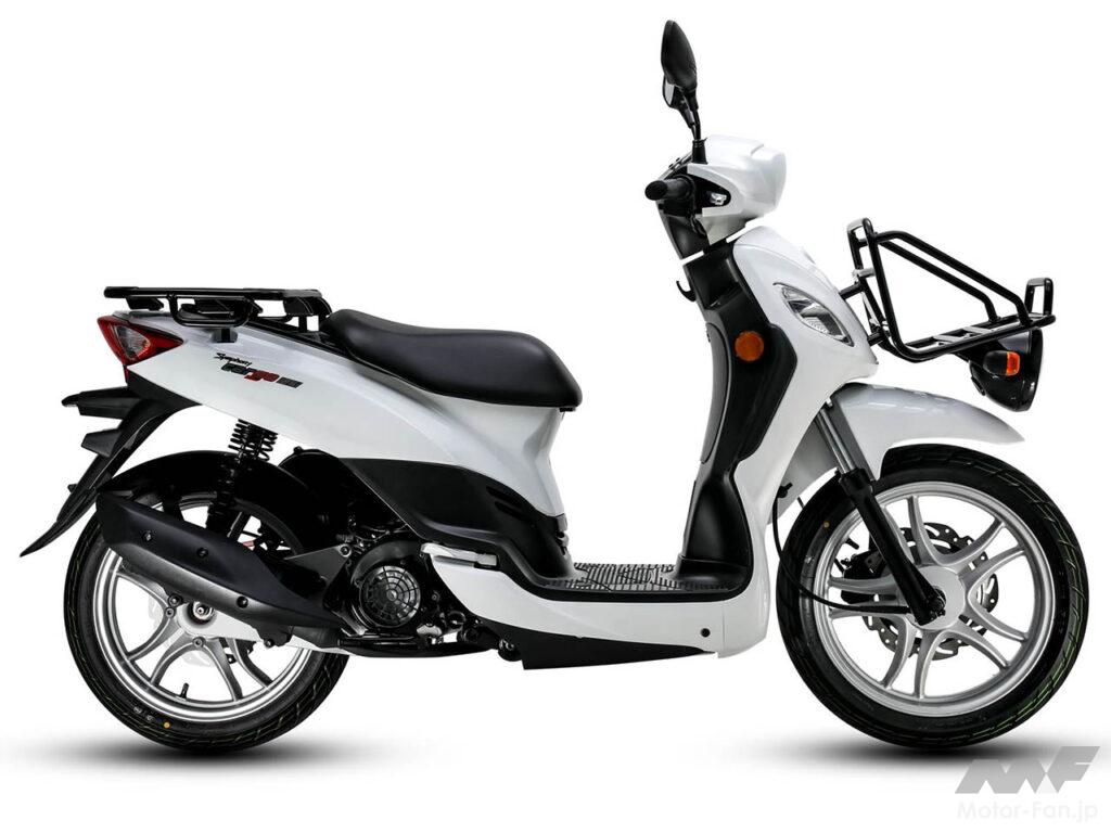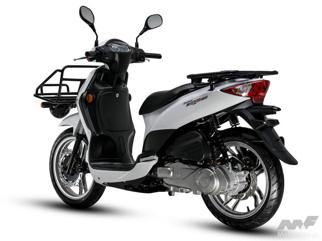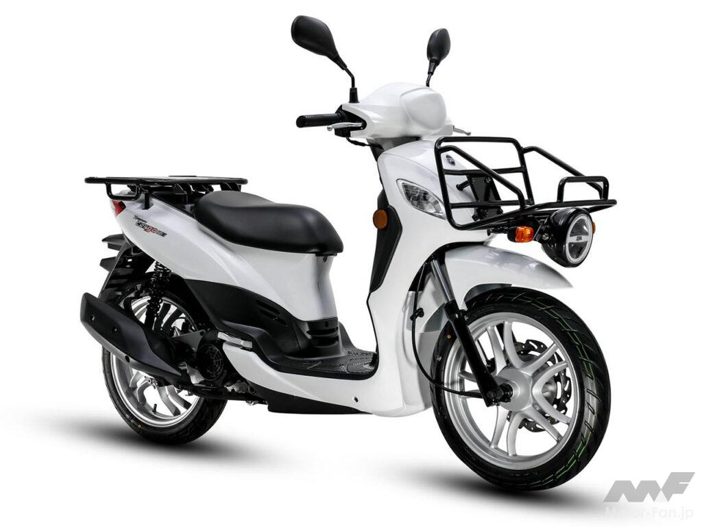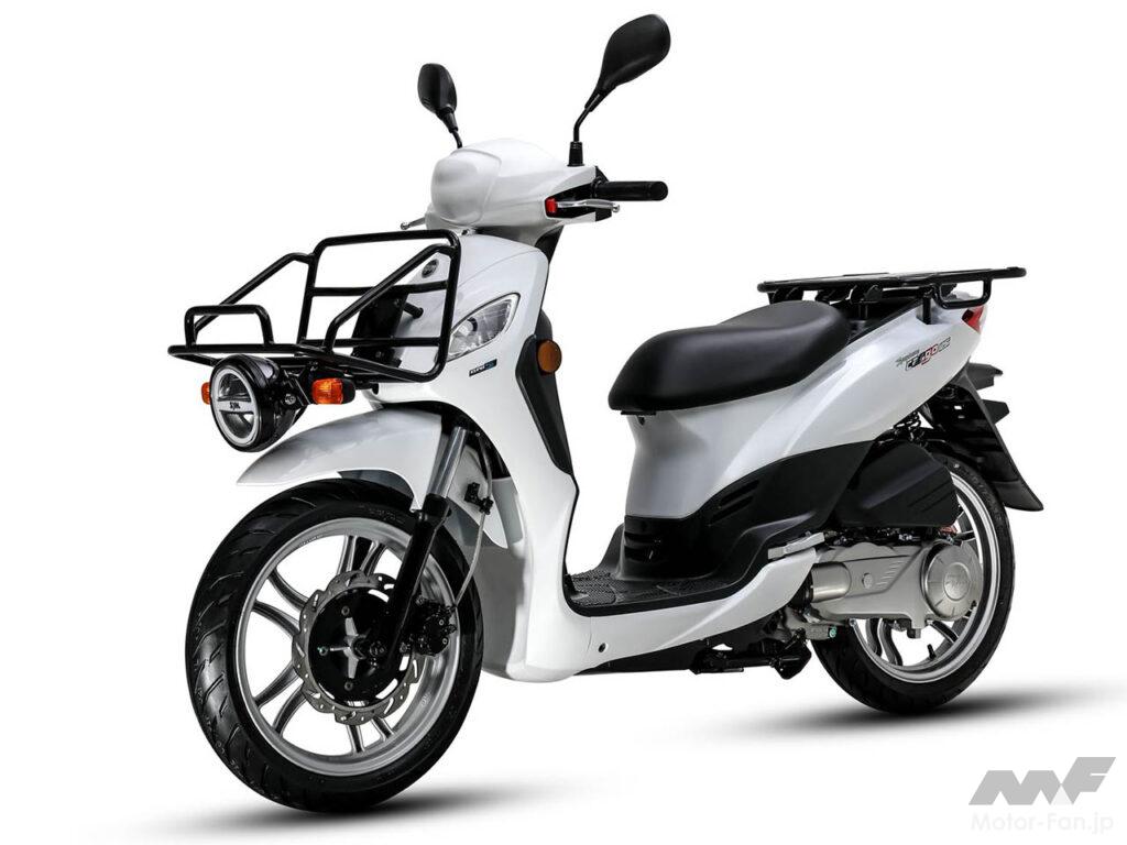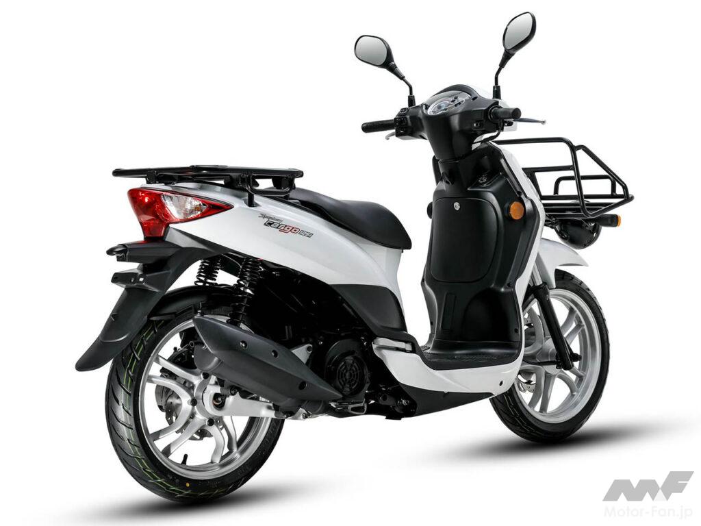 Symphony Cargo(シンフォニー・カーゴ)125は、大径ホイールとフラットなステップボードを備え、125ccエンジンを搭載したスクーター。前後に大型キャリアを装着した同車は、デリバリーや荷物を積んだ近距離移動など、ビジネス向けに設計されている。