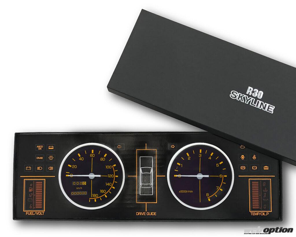 ラインナップは、ジュラルミン削り出し名刺ケース(1万3200円)、マグカップ(1540円)、水平指針メーター小皿セット(3850円)の3種類。いずれもR30スカイラインの特徴的装備をオマージュしたアイテムだ。