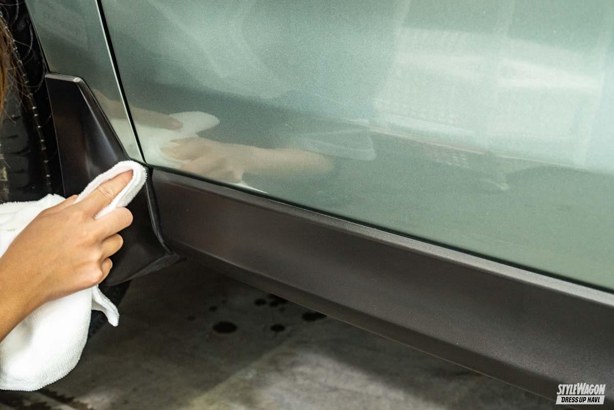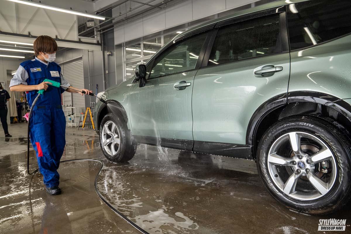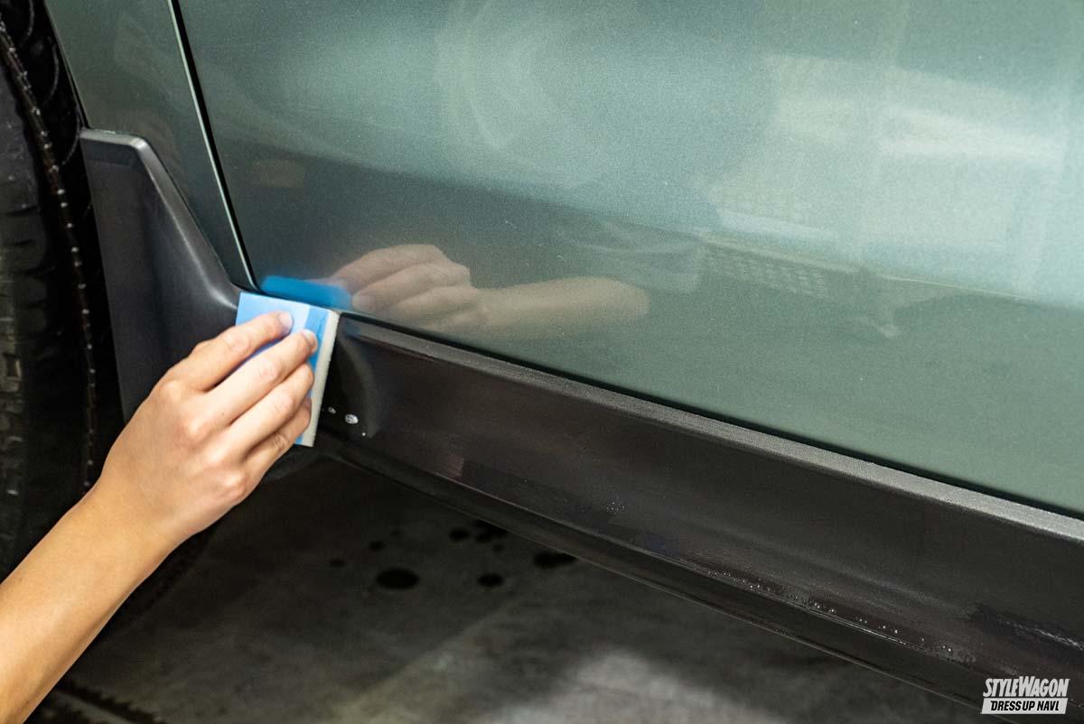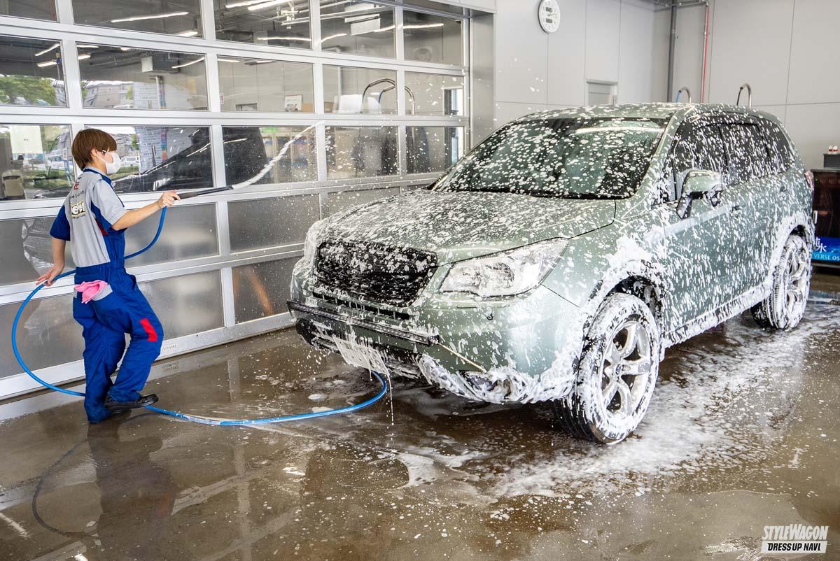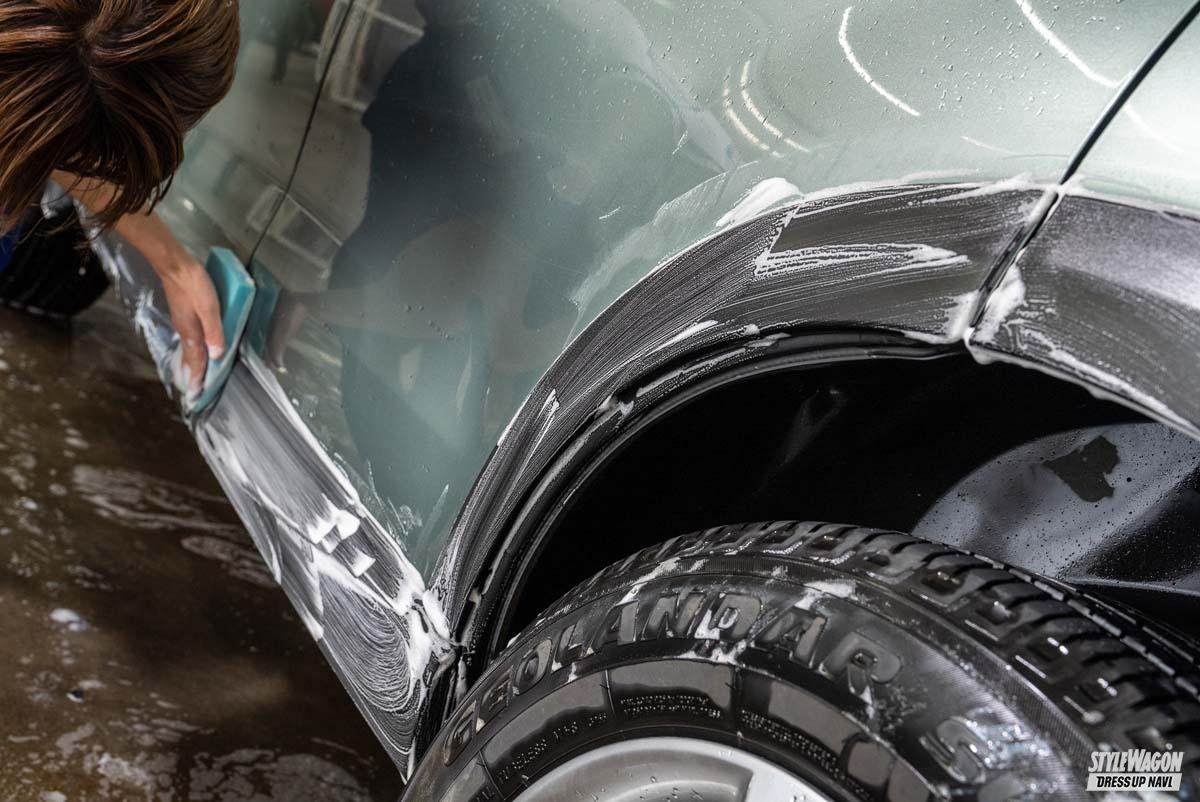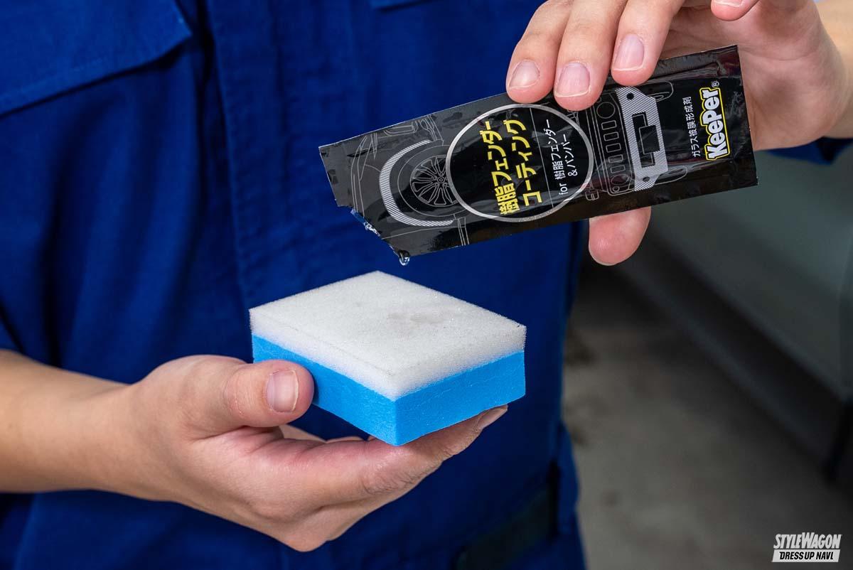 未塗装樹脂パーツ保護! ノーメンテになりがちな樹脂パーツをしっかり守る【写真・11枚目】 経年劣化した未塗装樹脂にありがちな、“白ボケた状態”がこの施工前。ボディがキレイでもここが白ボケしているとイマイチ締まりが悪い。 施工後は、まるで新車のような黒々としたツヤが復活。写真はサイド周りだが、ワイパーカウル部分への施工も可能となっているぞ。 1.まずは施工前に全体の汚れを洗車作業にて落としていく。この下準備も大事な作業となる。 2.ボディ全体を包み込む泡は要必見! ただただ、見ているだけでも楽しい光景なのだ。 3.洗車後は、コーティング専用の下処理材を使って未塗装樹脂部分を表面処理していく。 4.施工は専用の液剤をスポンジに垂らしていく。車体サイズにより液剤の使用量は異なる。 5.未塗装樹脂部分へ液剤を塗布していく。この時、塗り広げただけでもツヤが復活している。 6.塗り広げた後は、クロスで乾拭き&仕上げ拭きしていく。これにより自然な仕上がりになった。 この画像の記事を読む