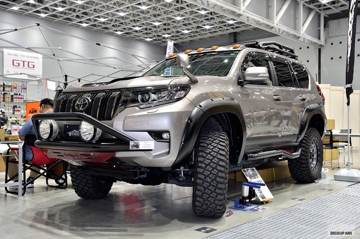ヨンクカスタムのスペシャリスト「ロードハウス」のハウスブランドであるカディスのプラド。オリジナルのボディマウントキットで4インチのリフトアップを施したスタイリングの足元には、オフ系タイヤの人気上位であるBFグッドリッチを装着。本格オフロードでの使用を前提に開発されたマッドテレーンT/A KM3によるボトムエリアのインパクトは絶大。走行性能はもちろんのことそのルックスが、カディスのデモカーと見事にマッチング。フロントのトレイルバーやボンネット、フェンダー、ラック系のアイテムとの相乗効果でヨンクカスタム感を大きく底上げしている。純正車高やちょいアゲ仕様とはひと味違う、タフネスなスタイリングを実現している。