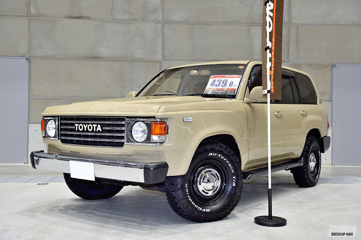 新潟の佐野オート商会のデモカーであるランクル100。ひと目みて分かるとおり、丸目のフェイスキットに換装されたカジュアルなクロカンスタイル。このオリジナルのキットはヘッドライト、グリル、バンパー、フェンダー、ボンネットを一式スワップ。無骨なヨンクというよりも、いまどきのアウトドアシーンをオシャレに飾れるルックスでランクル100をコーディネイトしている。足元にはそんなカジュアル感をより高めるディーンのクロスカントリーを装着し、オフタイヤの人気&定番であるBFグッドリッチのオールテレーンT/A KO2をマッチアップ。オールラウンドで使えて、タフネスなデザインを持っているという声の多いKO2は、カジュアルなカスタムにもベストマッチする。