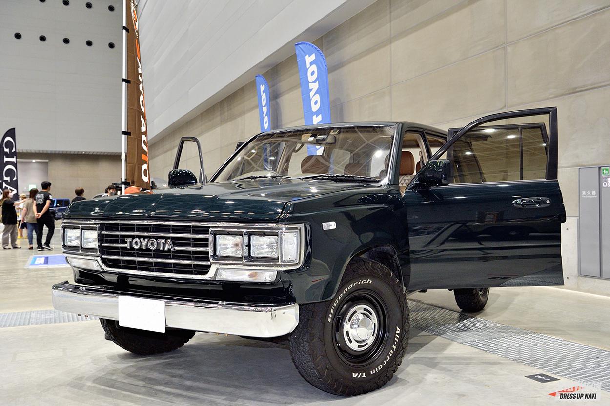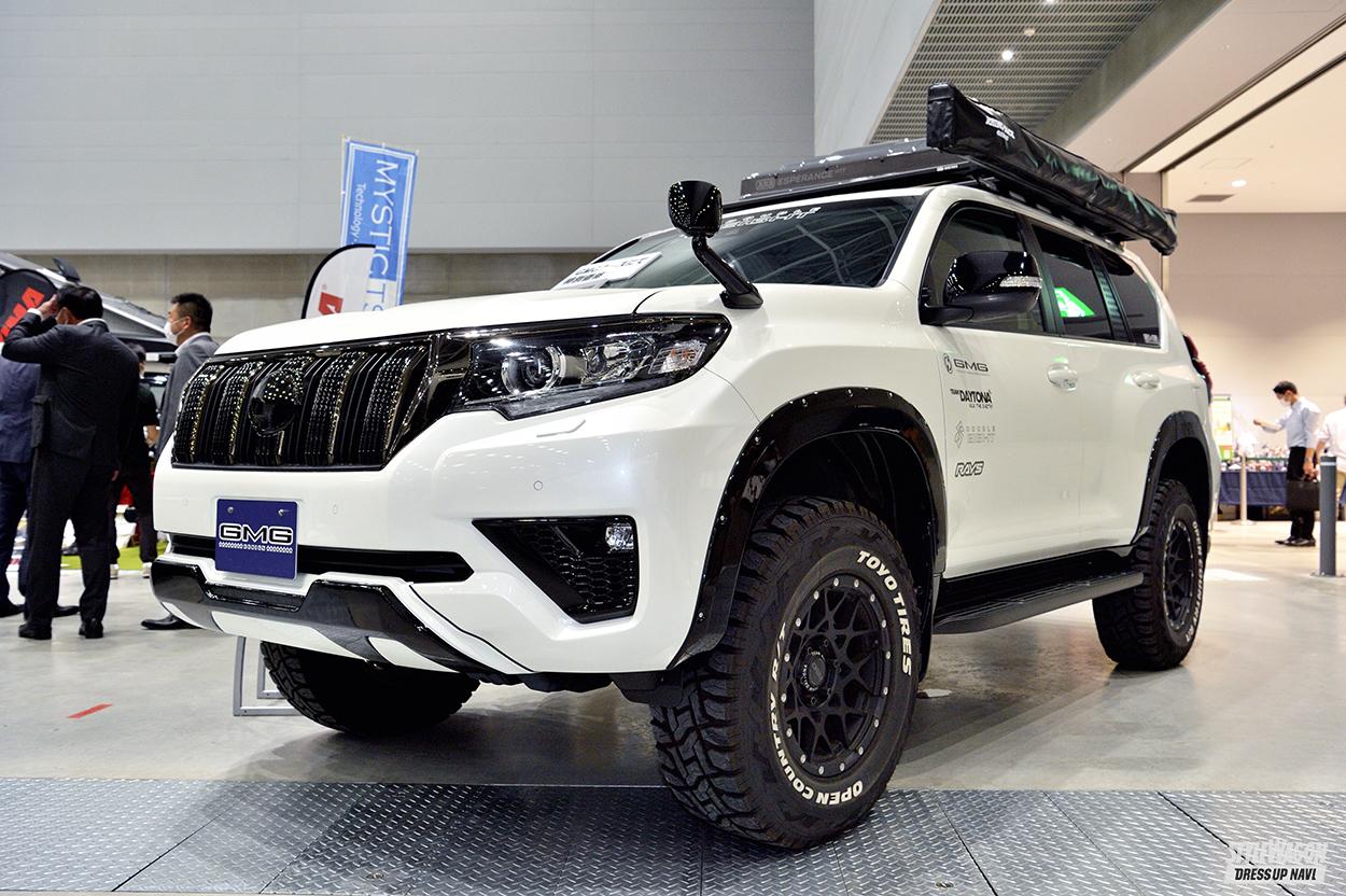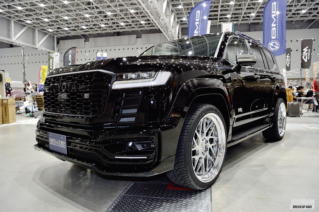 多彩なSUVカスタムを提案しているGMG。オフタイヤは未装着だったが、ギャラリーの注目を多く浴びていたのが、このランクル300カスタムだ。こちらはオフ使用ではなくストリート仕様。元々のボディの大きさ、迫力はもちろんのこと、エアロやオバフェンでよりスタイリッシュさに磨きがかかっている。そんなボディに合わせて足元もスーパースター・レオンハルト ジーニスガイストの24インチを装着。そしてこのスタイルではオフ系タイヤではなく、低偏平のヨコハマパラダをマッチング。オフタイヤのコーディネイトの基本はホイールサイズを落とし、タイヤのハイトを稼ぐカタチだが、GMGのランクル300のようにオンロードスタイルだと、ホイールを大口径にしてタイヤのハイトを薄くするのが定番だ。