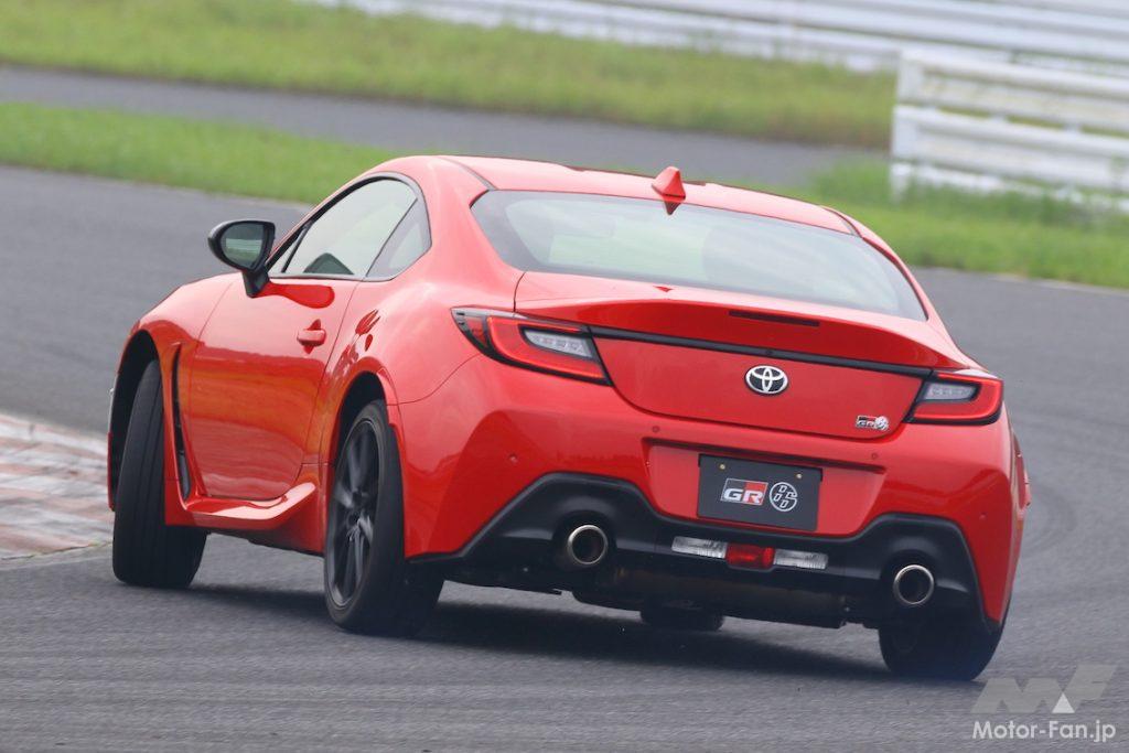また、BRZはトレーリングアームのブッシュ硬度を上げたのに対し、86は前型と共用とした(つまり、BRZより柔らかい)。これは、リヤサスペンションがストロークした際(縮み側に動いた際)にリヤタイヤにトーインが付いてコーナリングフォースを発生させ、リヤをより踏ん張らせるためだ。BRZがスタビライザーの効率を重視してボディ直付けにしたのに対し、86は前型と同じブラケット取り付け(サスペンションメンバーが入力を受ける)にあえて戻したのは、アンダーもオーバーも自在に出せる自在感を狙ってのことだという。