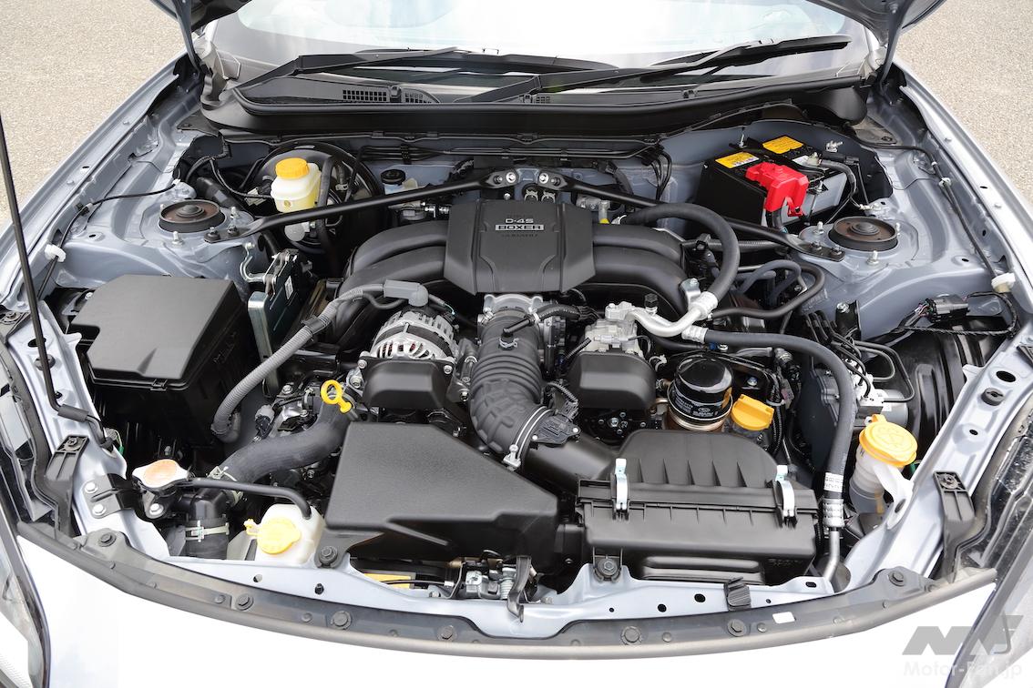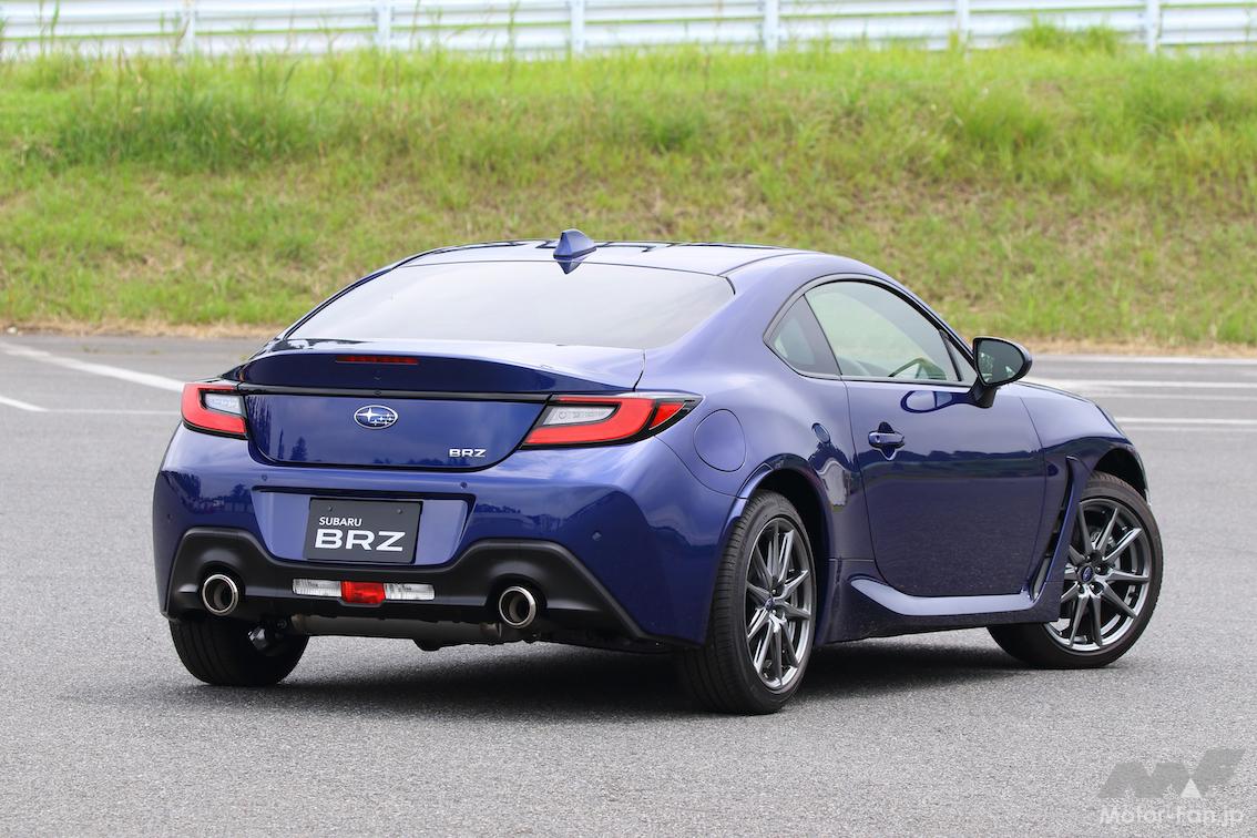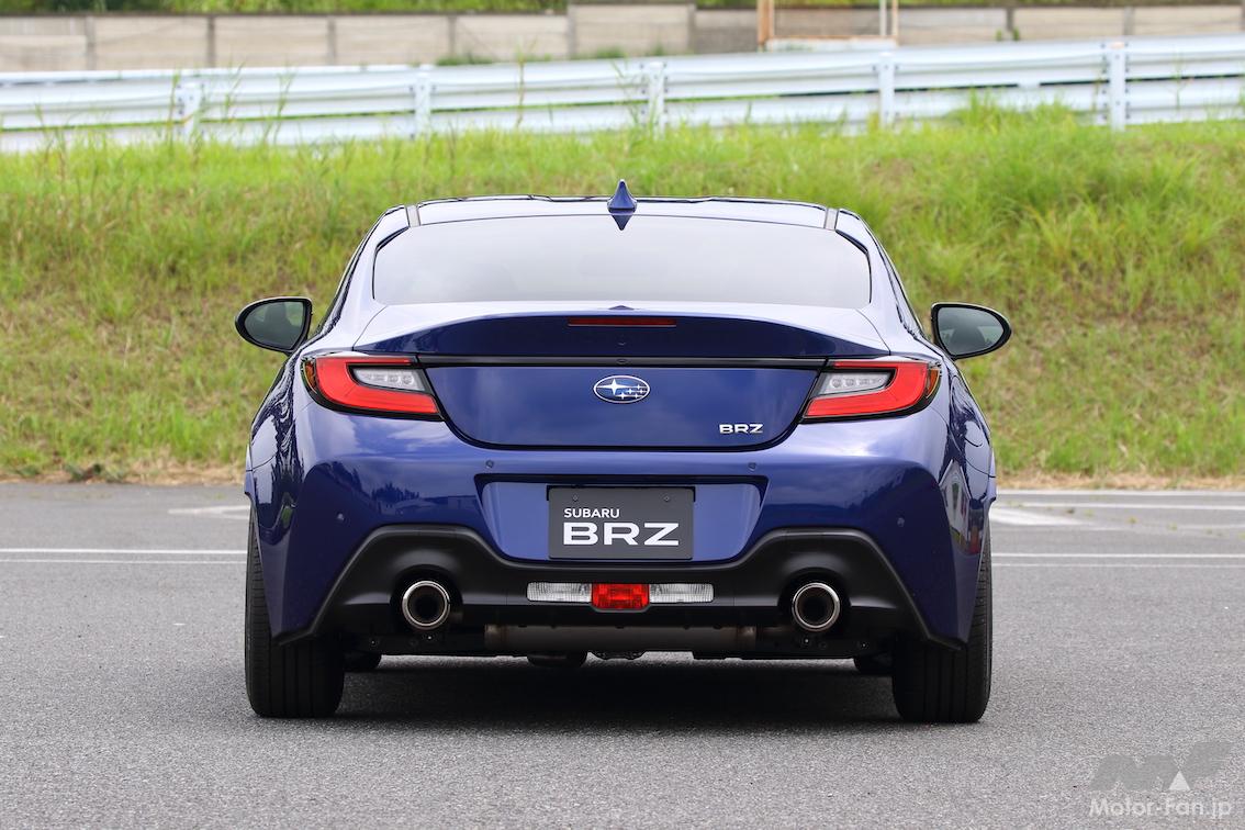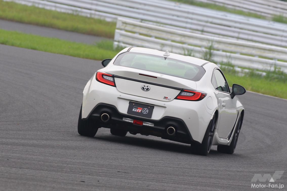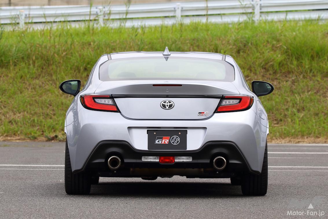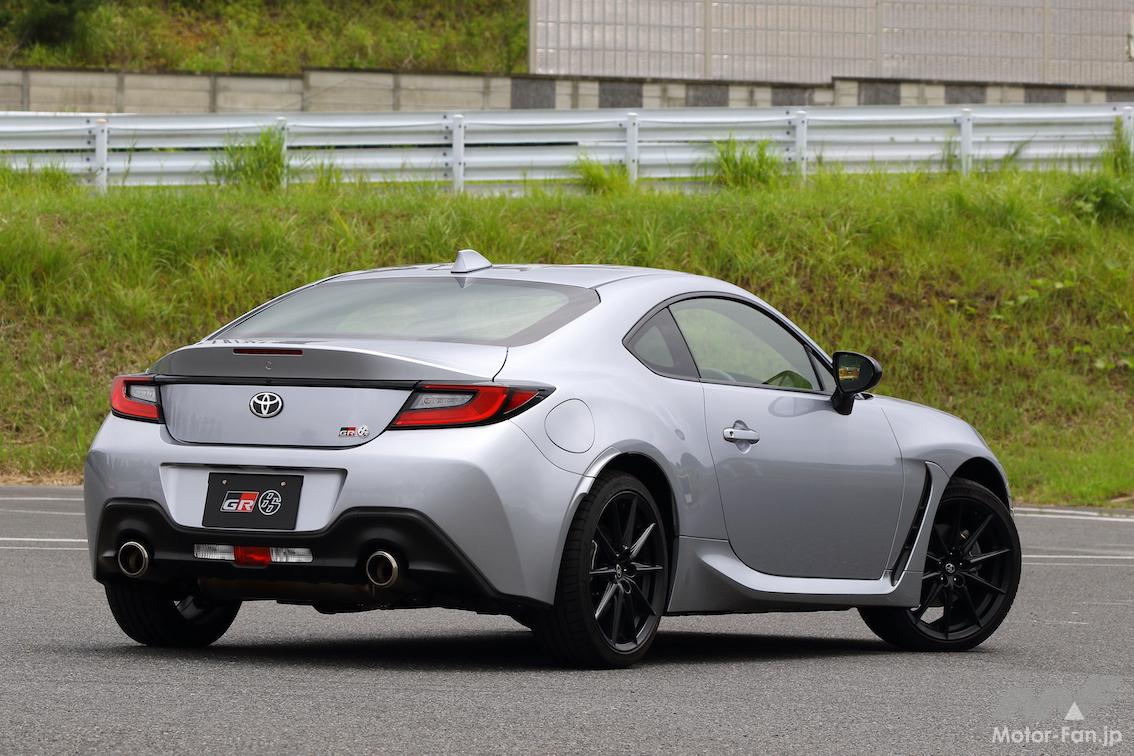 また、BRZはトレーリングアームのブッシュ硬度を上げたのに対し、86は前型と共用とした(つまり、BRZより柔らかい)。これは、リヤサスペンションがストロークした際(縮み側に動いた際)にリヤタイヤにトーインが付いてコーナリングフォースを発生させ、リヤをより踏ん張らせるためだ。BRZがスタビライザーの効率を重視してボディ直付けにしたのに対し、86は前型と同じブラケット取り付け(サスペンションメンバーが入力を受ける)にあえて戻したのは、アンダーもオーバーも自在に出せる自在感を狙ってのことだという。