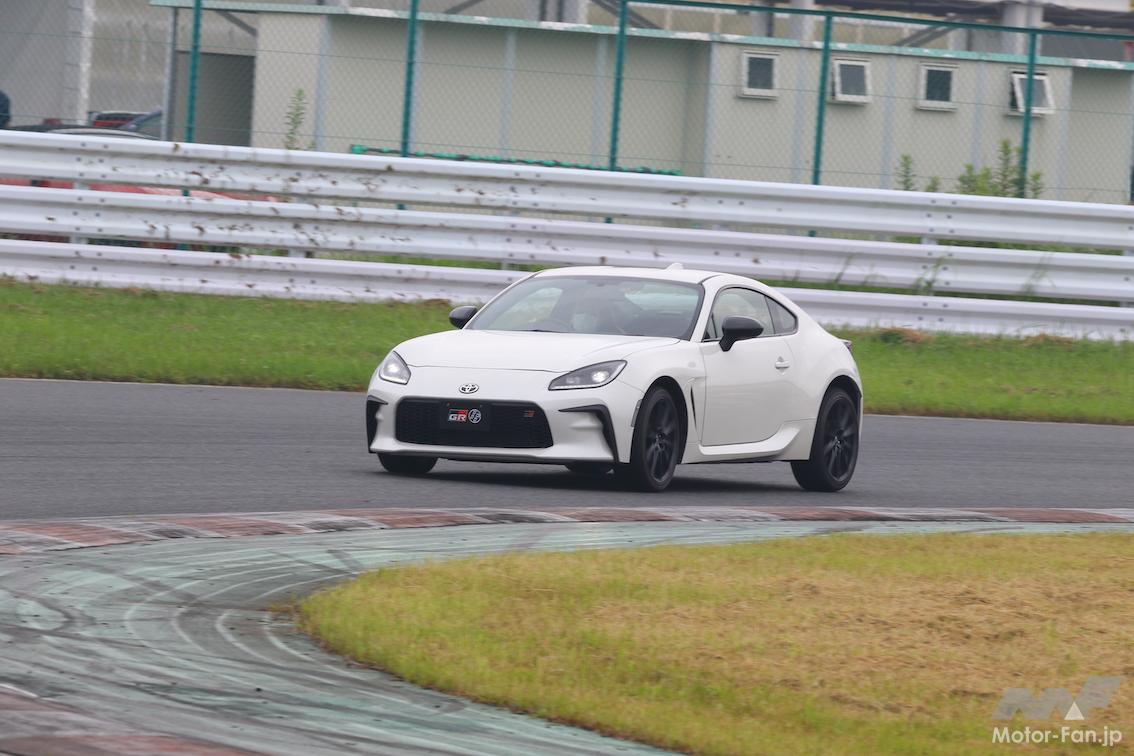 走りはもっとわかりやすい。路面がフルウエットで、リヤタイヤがスライドしやすい条件だったことともあるが、それにしても、GR 86はお尻が出やすい。コーナーの立ち上がりで、「そろそろいいかな?」とアクセルペダルを踏み込むと、まぁ、半ば出るだろうなと予期しながらではあるのだが、踏んだ途端にズルッとお尻が出て、クルマがカウンターステアをドライバーに求めてくる。