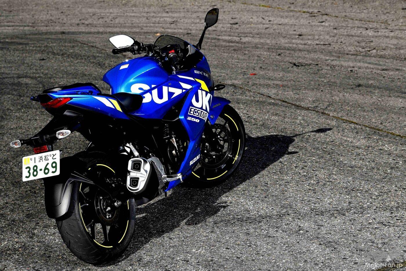 158kgの装備重量と1345mmのホイールべースは、現代の250ccフルカウルスポーツの平均値を大幅に下回っているから、取り回しはイージー。ただしバックミラーに関しては、左右への張り出しが大きいので狭いところでは気を遣うし、いったん折り畳んで基の位置に戻す際のカチッと感が無いことが、個人的には気にならないでもなかった。
