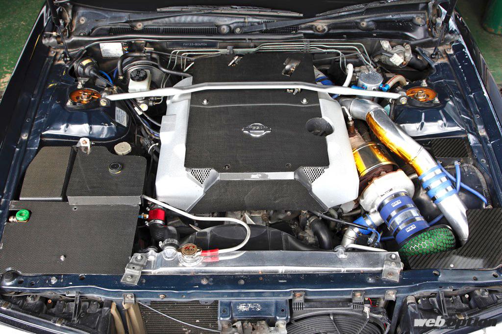 心臓部はVQ30DET改GT3037シングルターボ仕様だ。エンジン本体には手を入れてないため、ブースト圧は1.2キロに抑えられているが、それでも約450psを発揮するハイスペック。合わせてミッションも、純正ATからZ32の5速MTへと換装している。