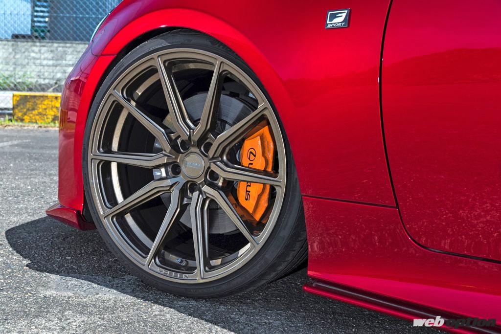 なお、取材車両はストリート仕様ということで、魅せる方向性でカスタムされており、RS-R車高調でローフォルムを構築した上でホイールには20インチのヴォッセHF3をインストール。もちろんこれが実走車高だが、高級スポーツクーペらしい快適な乗り味は損なわれていない。