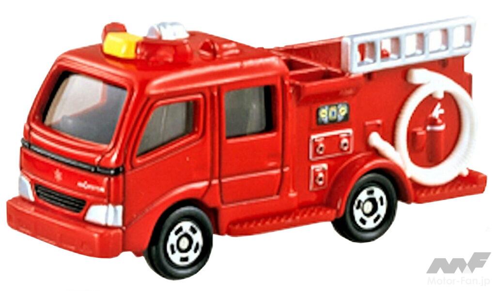 「消防車」も大雑把に言えばトラックですが、一般にトラックは、自動車メーカーの製造するトラックの車体に、設備や装備専門のメーカーがそれらを装備することでオーダーメイドで作られます。トラックに搭載する設備や装備を開発・製造し、トラックの車体に取り付けるメーカーのことを架装メーカーと言いますが、消防車の代表的な架装メーカーにひとつが株式会社モリタホールディングス(以下、モリタ)です。『トミカ』の『No.41 モリタ CD-I型 ポンプ消防車』は、そのモリタが手掛けている代表的な小型消防ポンプ自動車をモデル化したもので、『トミカ』の中でも人気が高く、息の長いロングセラーとして広く知られています。