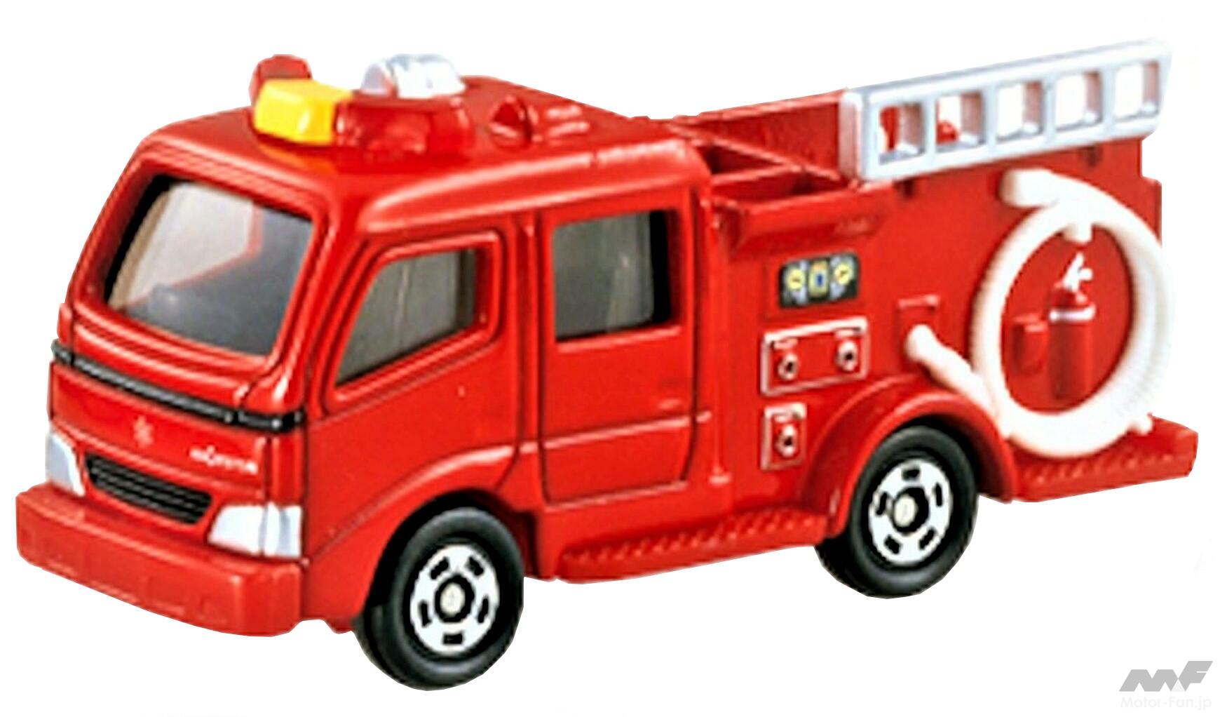 「消防車」も大雑把に言えばトラックですが、一般にトラックは、自動車メーカーの製造するトラックの車体に、設備や装備専門のメーカーがそれらを装備することでオーダーメイドで作られます。トラックに搭載する設備や装備を開発・製造し、トラックの車体に取り付けるメーカーのことを架装メーカーと言いますが、消防車の代表的な架装メーカーにひとつが株式会社モリタホールディングス(以下、モリタ)です。『トミカ』の『No.41 モリタ CD-I型 ポンプ消防車』は、そのモリタが手掛けている代表的な小型消防ポンプ自動車をモデル化したもので、『トミカ』の中でも人気が高く、息の長いロングセラーとして広く知られています。
