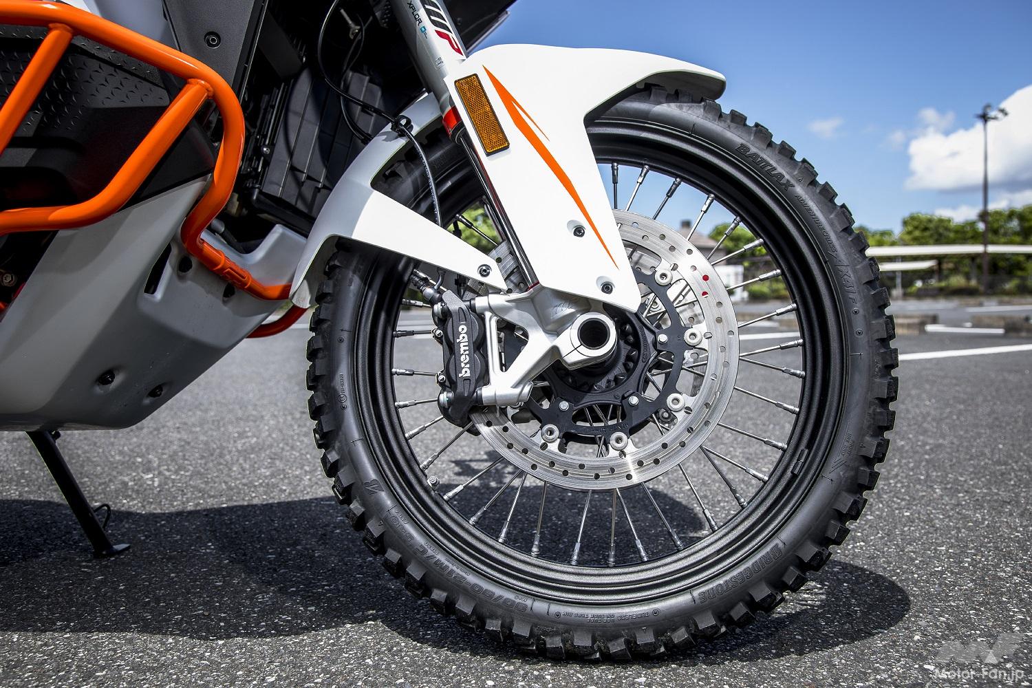 補足するとモトクロッサーやエンデューロマシン等の競技用車両は、フロントに21インチサイズを履くのが常識的。凹凸路面の基本的な踏破性能が高いからである。