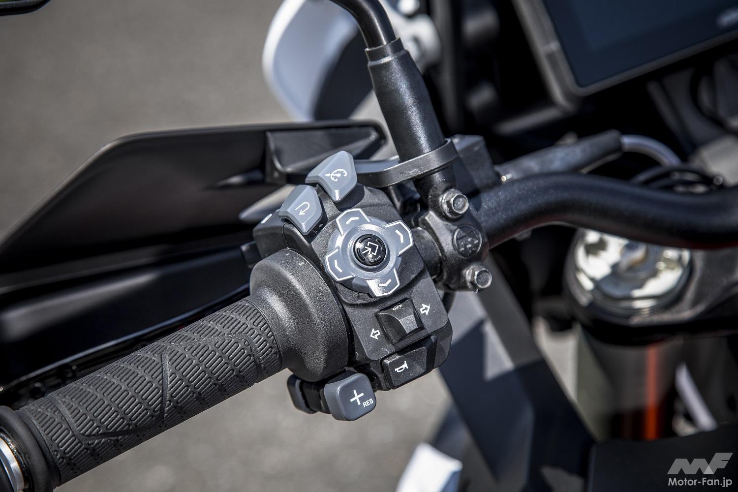 試乗は舗装路のみだったが、操縦性は至って素直。ただし、操舵レスポンスはゆったりと穏やかな挙動に終始する。コーナー進入でバイクを傾けた時に向きを変えて行く旋回力もゆっくりと訪れる感覚。
